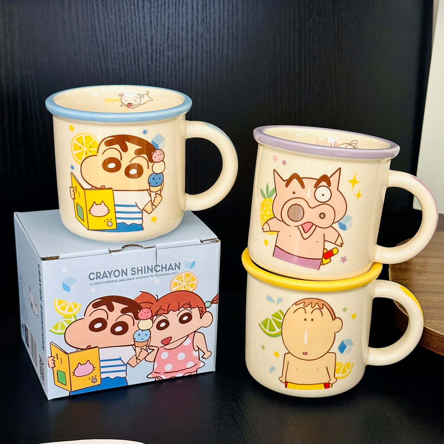 可爱蜡笔小新陶瓷喝水杯子带刻度送女生马克杯牛奶早餐杯生日礼物