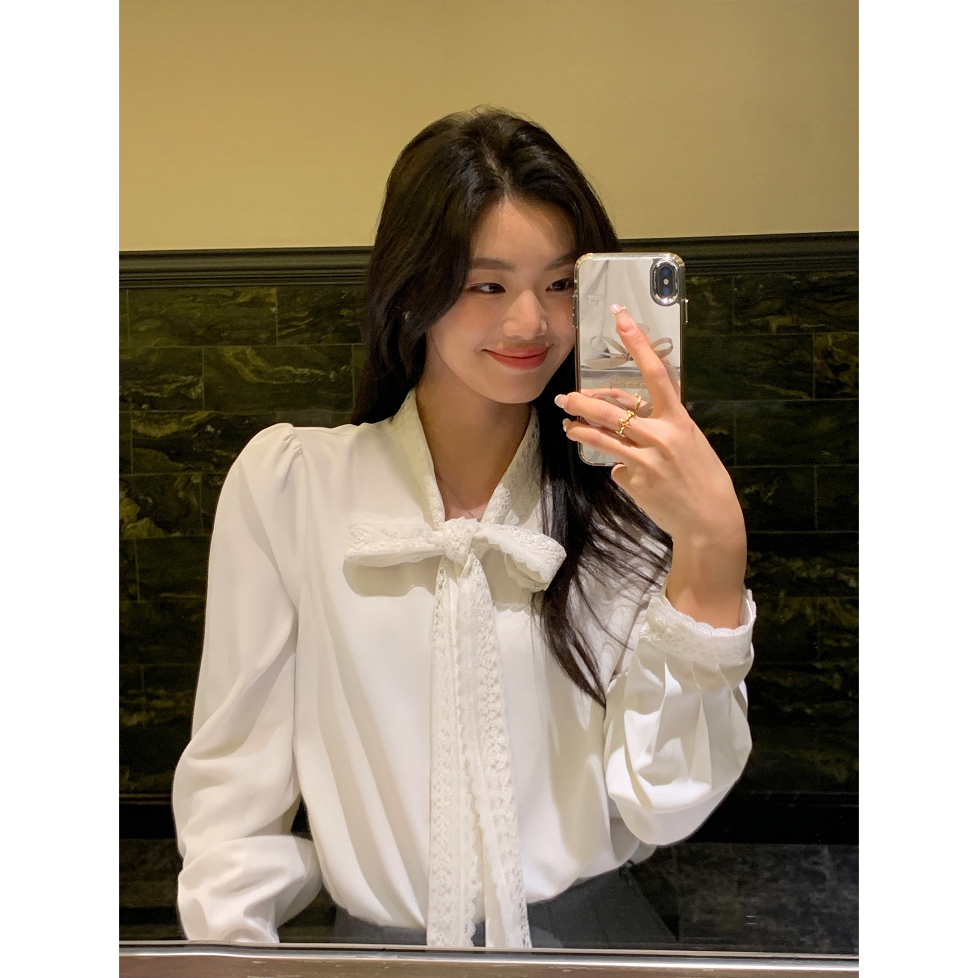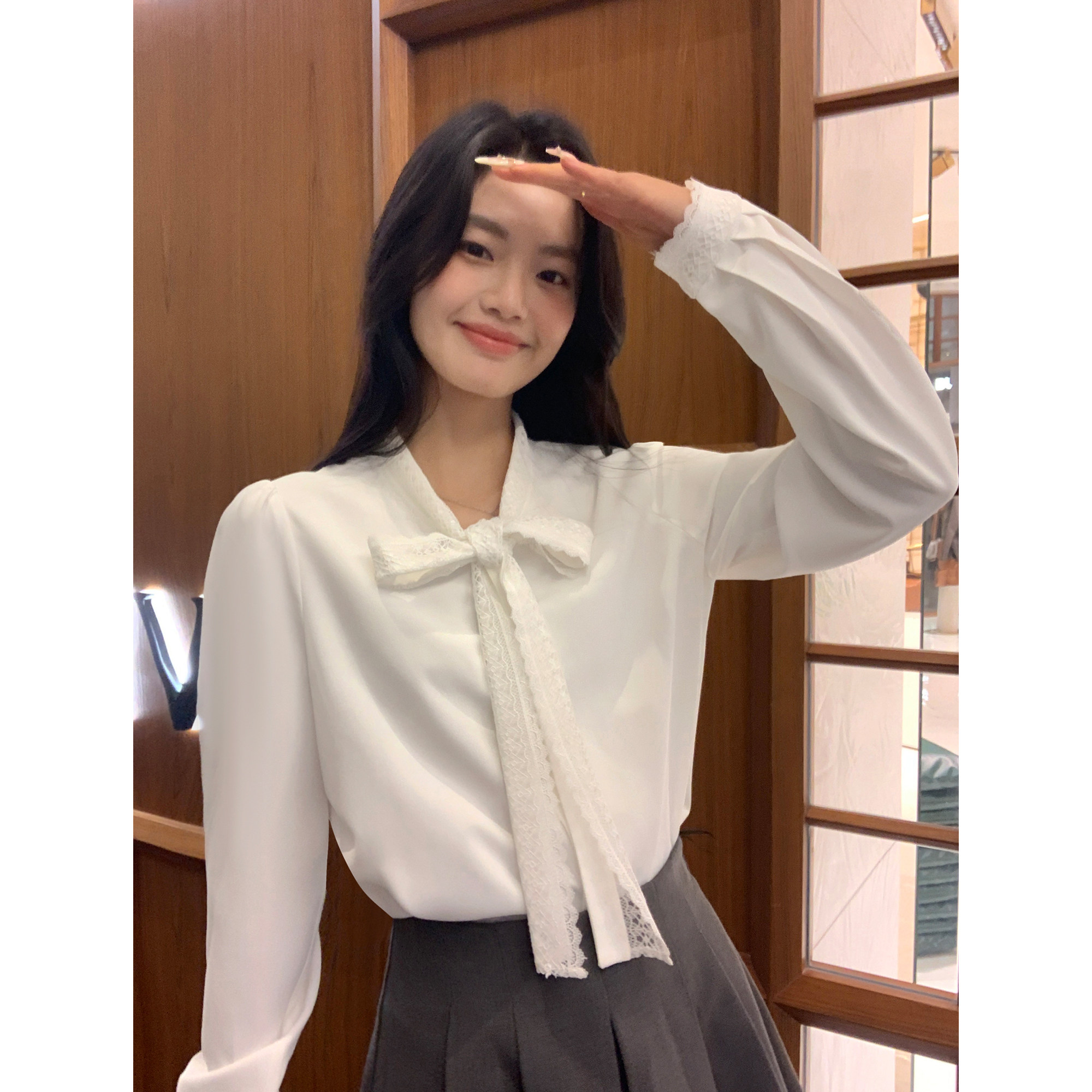 蝴蝶结系带法式长袖衬衫女气质