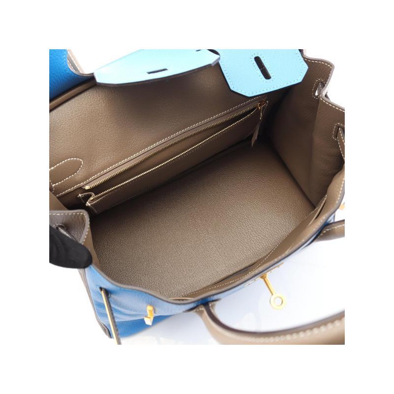 中古Hermes爱马仕女包A级95新birkin 30铂金包 30牛皮手提包蓝色