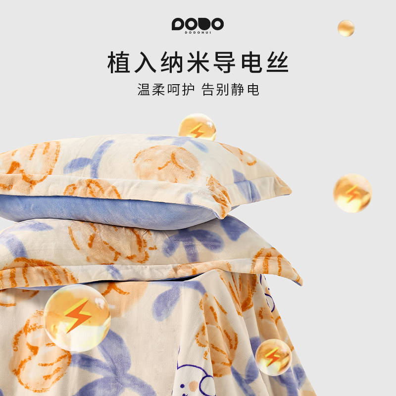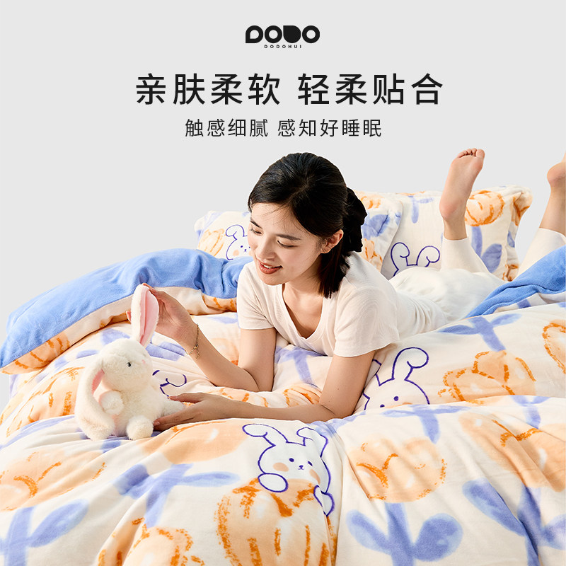 多多汇糯米暖绒四件套珊瑚牛奶绒冬季加厚保暖无静电绒毛被套枕套