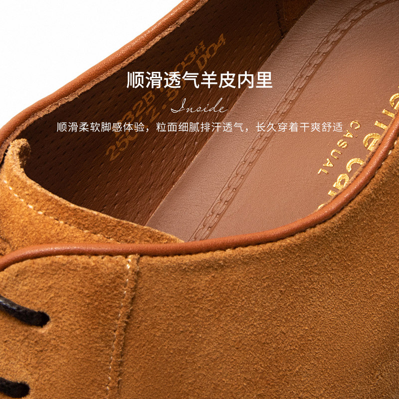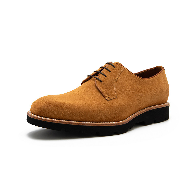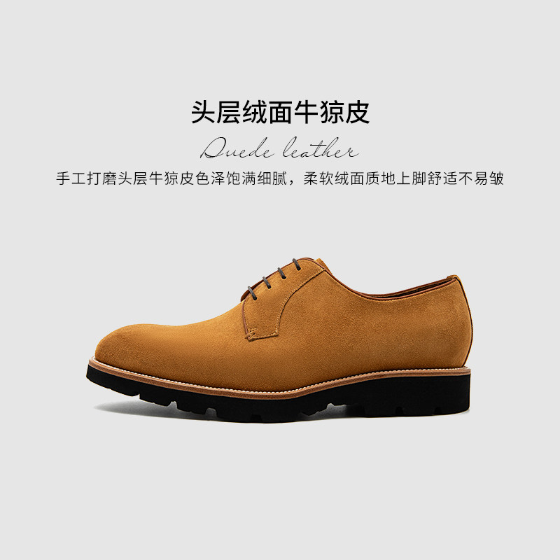 Pierre Cardin/皮尔卡丹男鞋商场同款牛猄皮厚底德比鞋真皮轻底