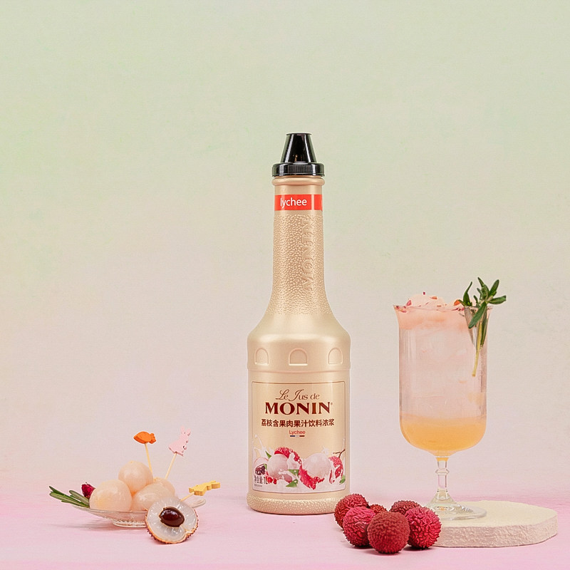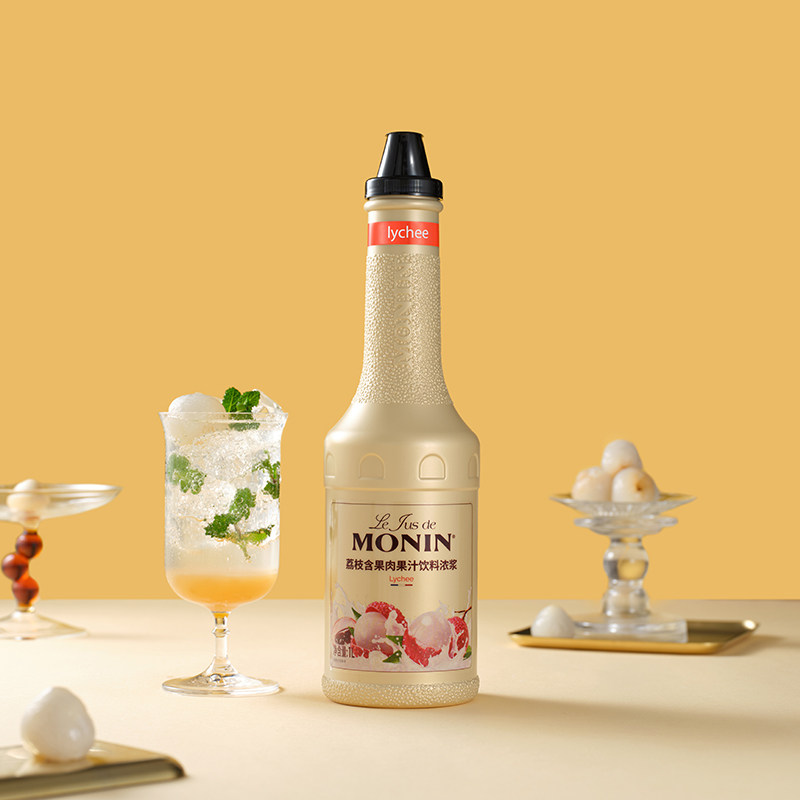 莫林MONIN荔枝含果肉果汁饮料浓浆1L浓缩果汁冲泡调饮水果茶调酒