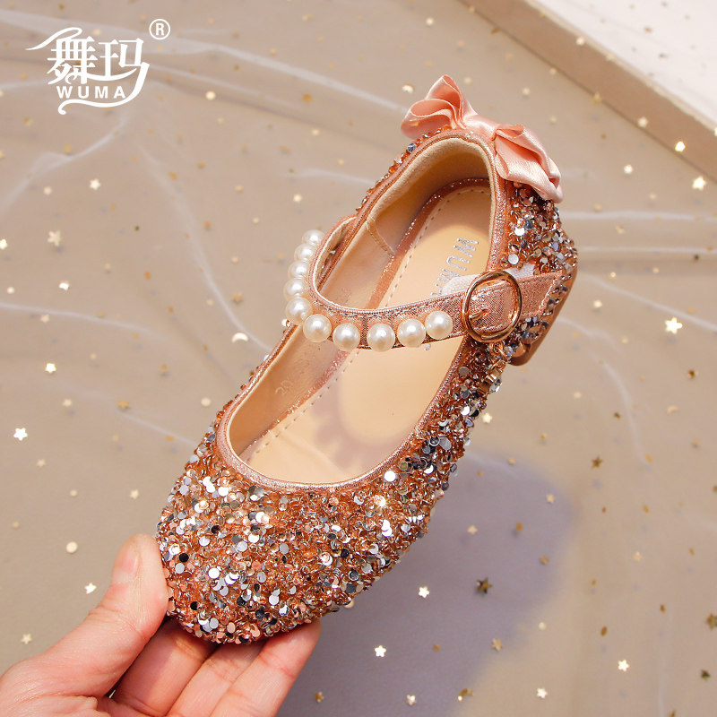 舞玛女童春秋季时尚高跟水晶鞋