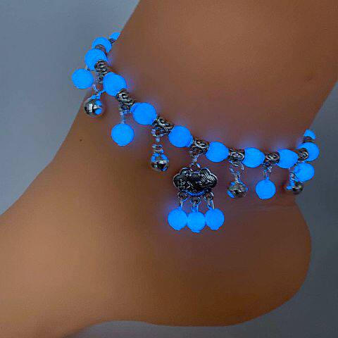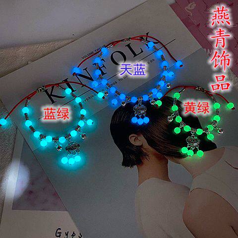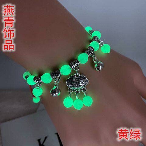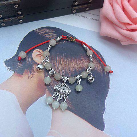 跳舞蹈藏银铃铛有声音夜光发光石长命锁红绳编织脚链女复古民族风