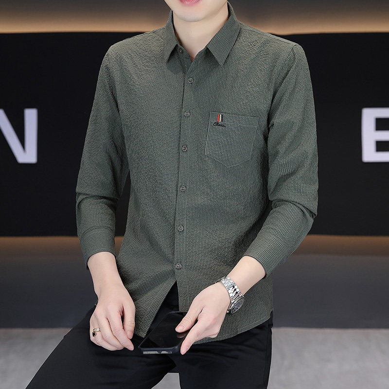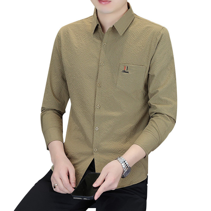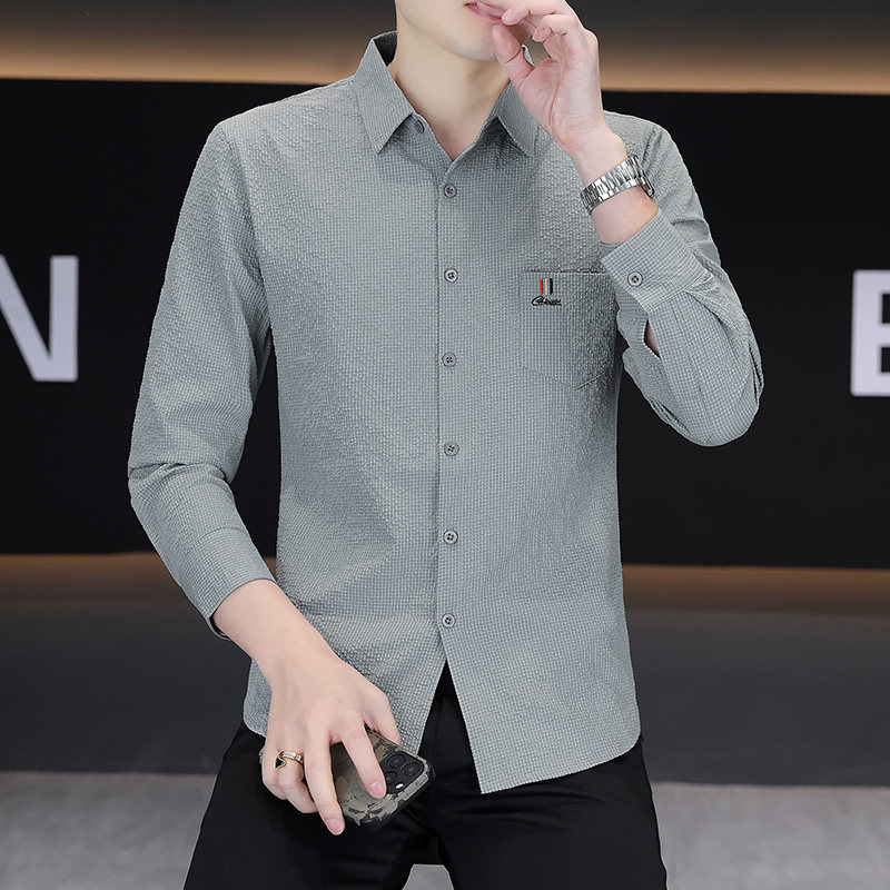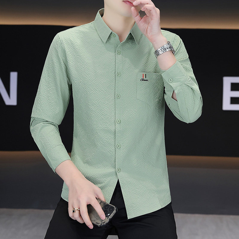 罗蒙男士长袖衬衣春季新款免烫抗皱潮流男款衬衫休闲百搭翻领上衣