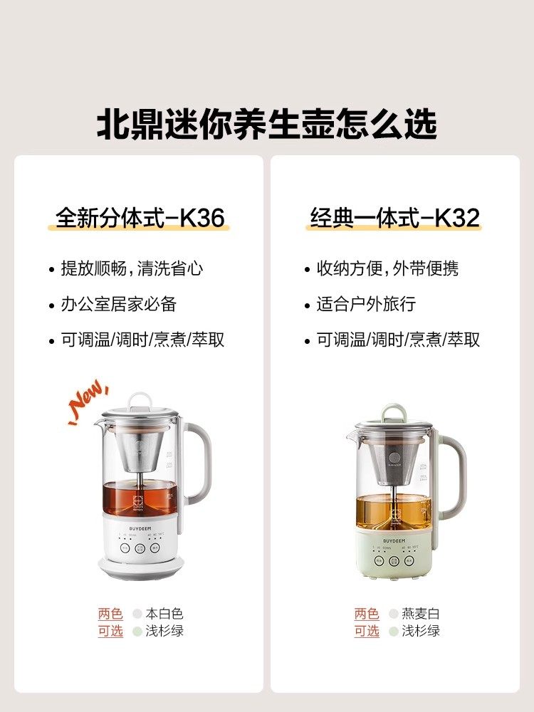 北鼎养生壶家用多功能 办公室小型mini煮茶壶 迷你煮茶器K36&K32