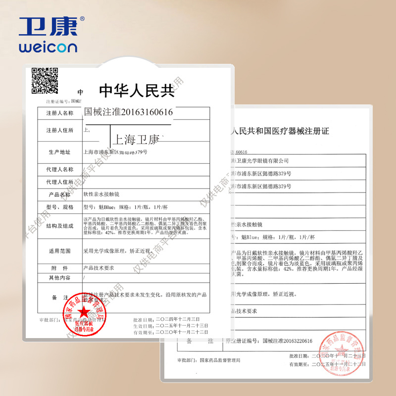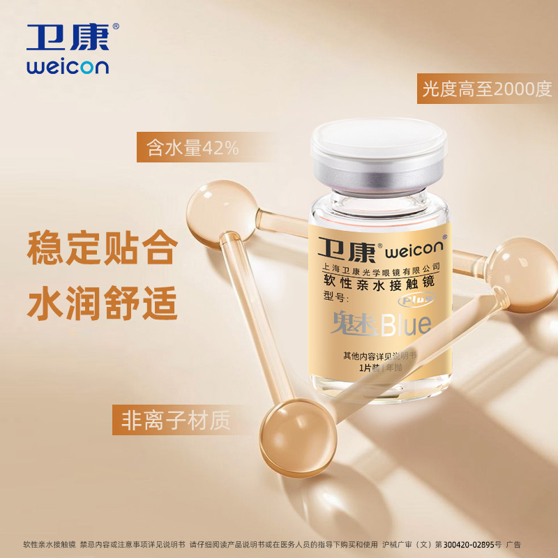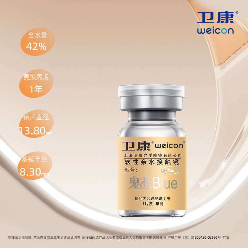 卫康隐形眼镜plus年抛2 金装魅BLUE年抛高度数镜片水润舒适透明片