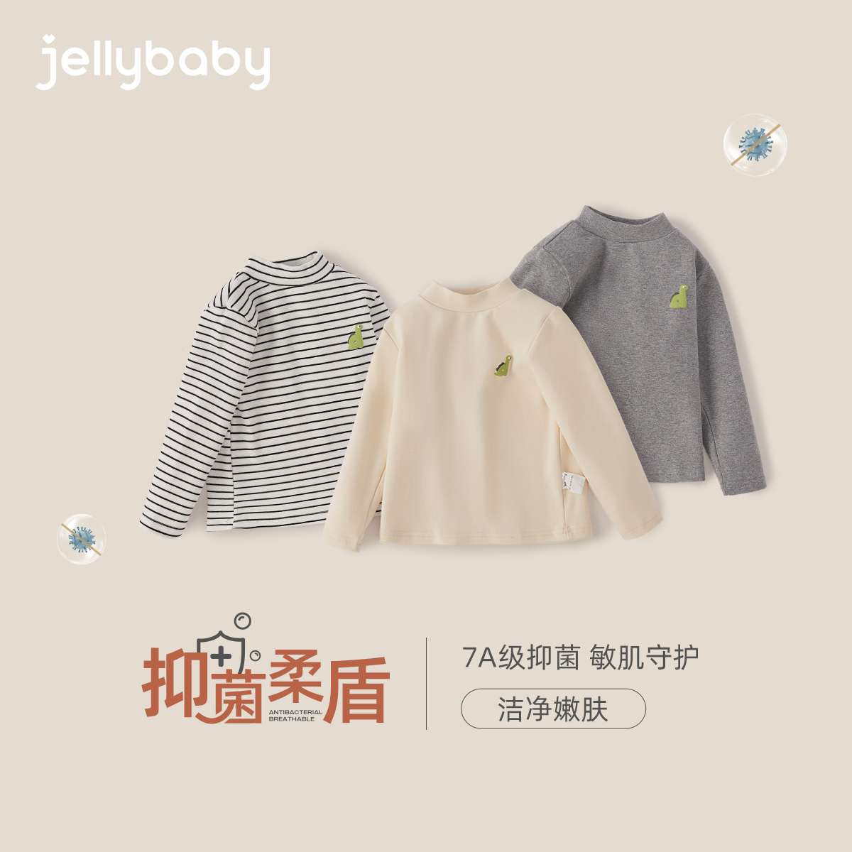 [抑菌远红外]男童长袖t恤男宝秋季上衣3岁秋冬保暖高领儿童打底衫
