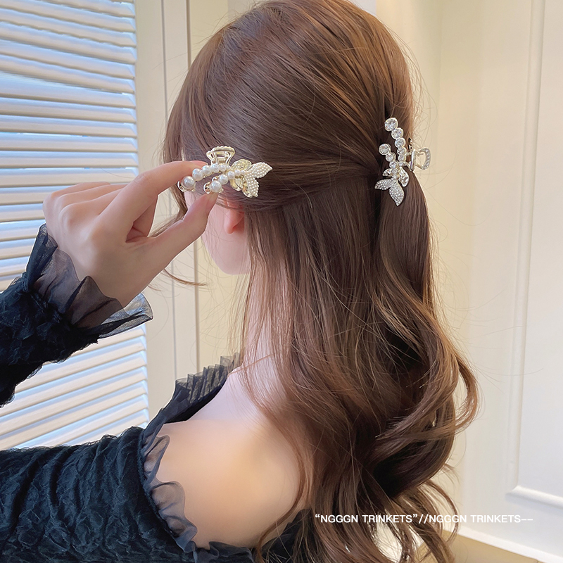 高级感珍珠发夹女气质新款小号抓夹后脑勺半扎发鲨鱼夹子头饰发卡