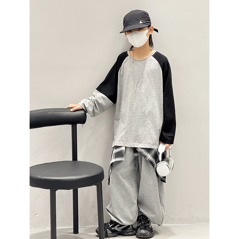 男童纯棉插肩长袖T恤秋装春秋款童装儿童宝宝中大童打底衫男孩潮