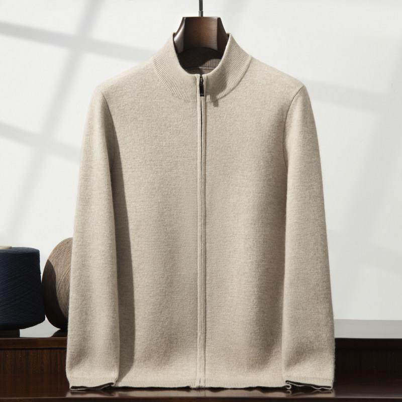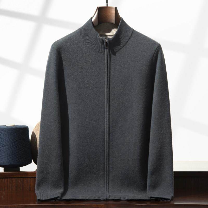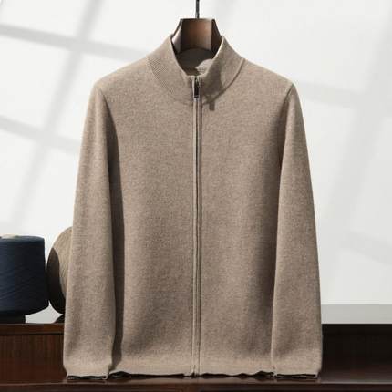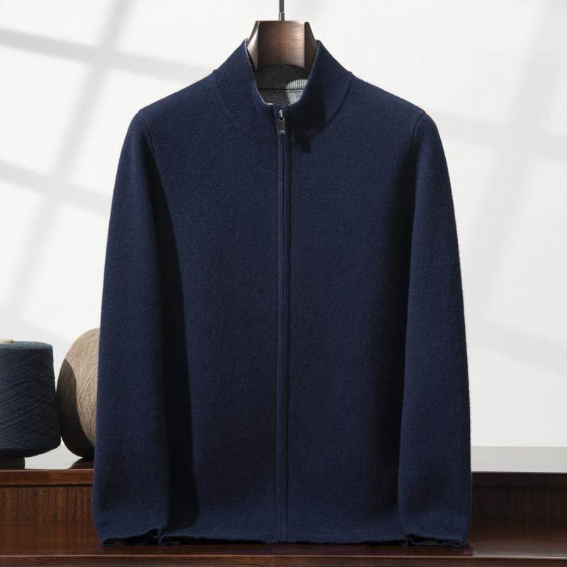 鄂尔多斯产空气层加厚100%纯山羊绒男款针织拉链开衫商务休闲外套