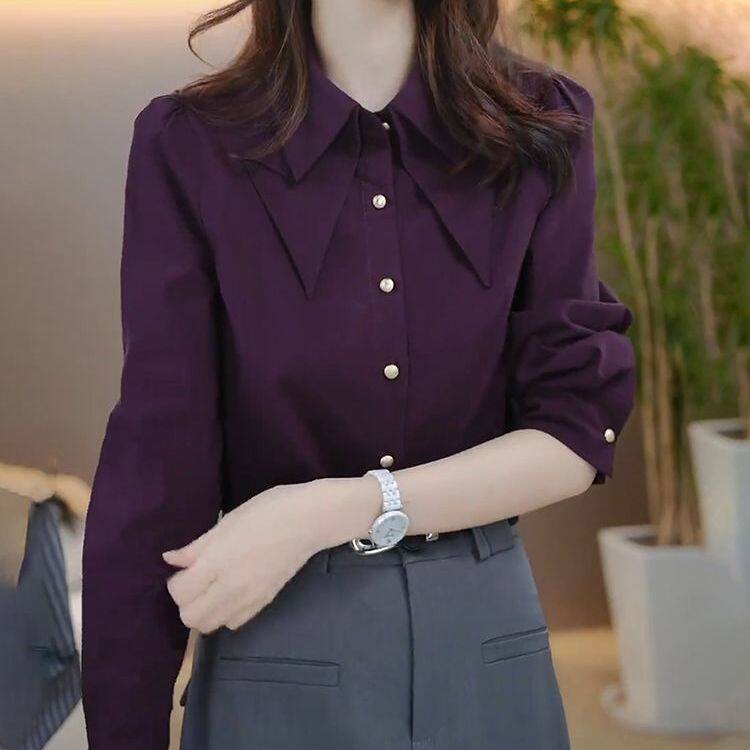 轻奢高级感复古紫色衬衫女秋冬2026新款内搭休闲通勤衬衣气质上衣