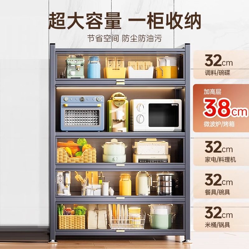 厨房微波炉防尘置物柜家用落地多层置物架碗筷柜餐边柜橱柜收纳柜