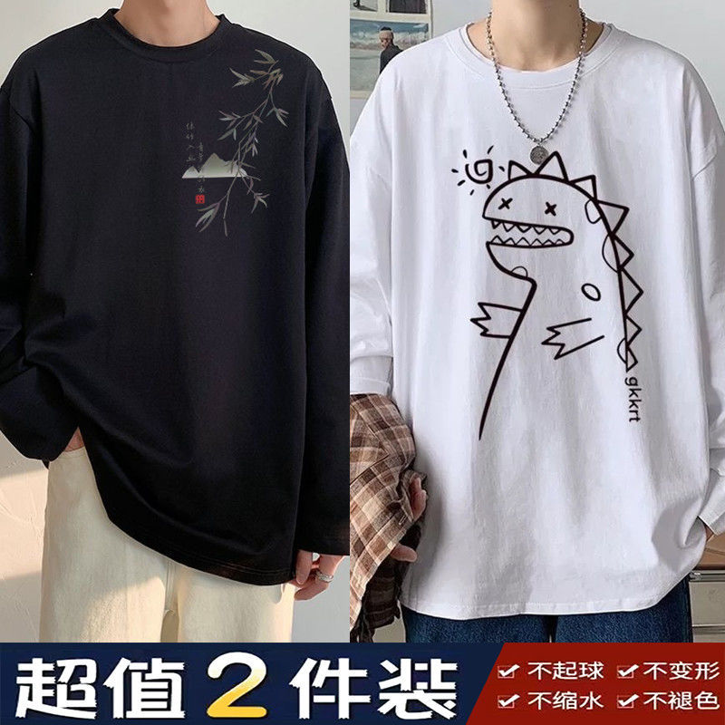 春秋新款长袖t恤宽松显瘦加肥加大打底衫ins港风百搭胖子男装长袖