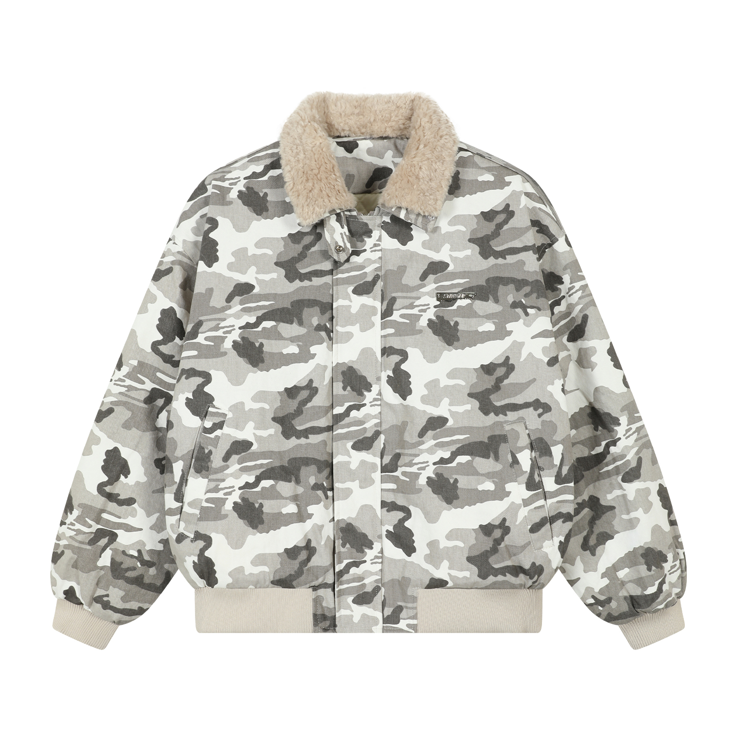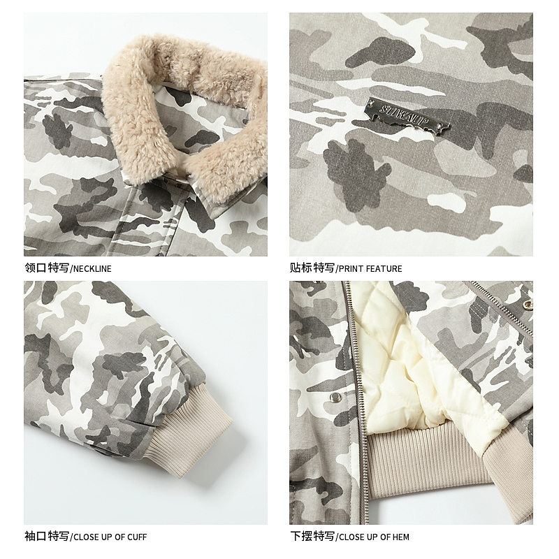 冬季嘻哈迷彩毛绒翻领棉衣男