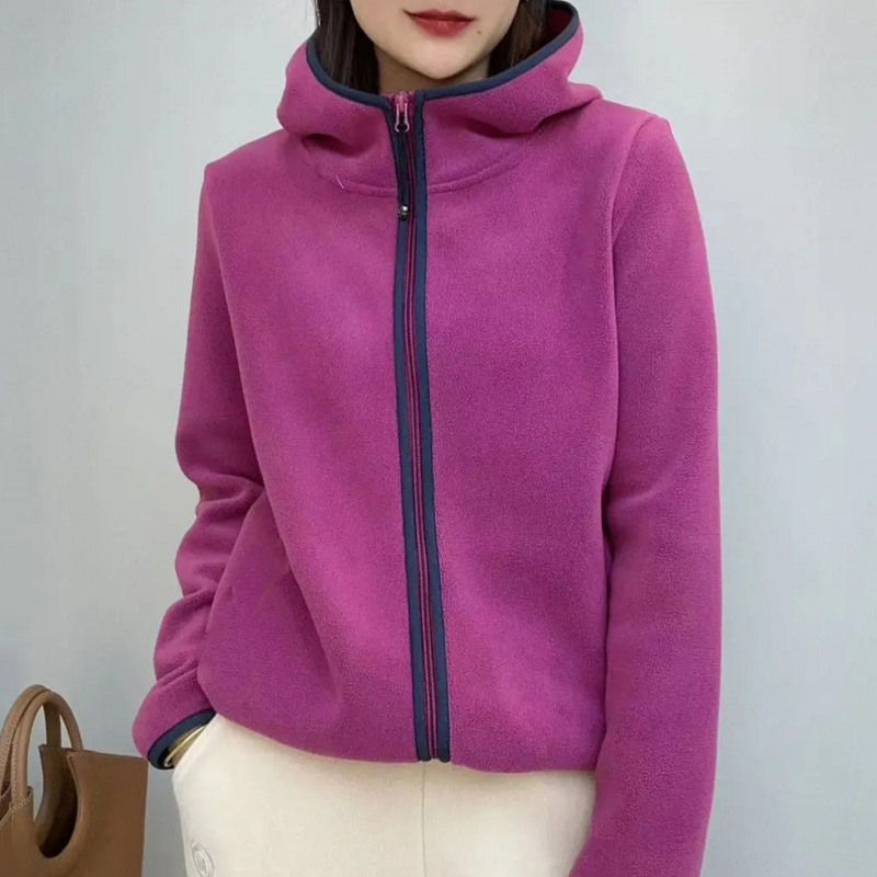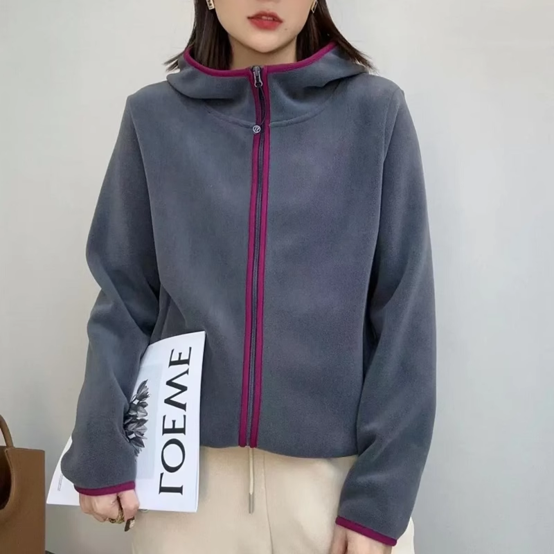 双面摇粒绒连帽卫衣女2025秋冬新款休闲时尚百搭撞色开衫外套女潮