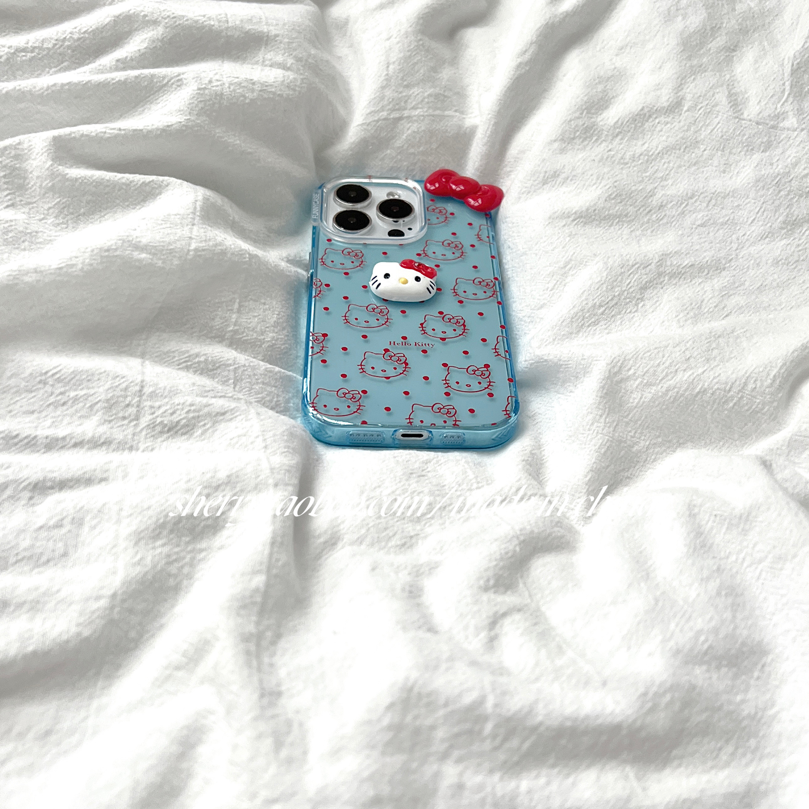 SHERRY*ins风夏日透明蓝色红线条kt猫立体蝴蝶结可爱适用于苹果15ProMax手机壳iPhone14Pro小众少女心13卡通