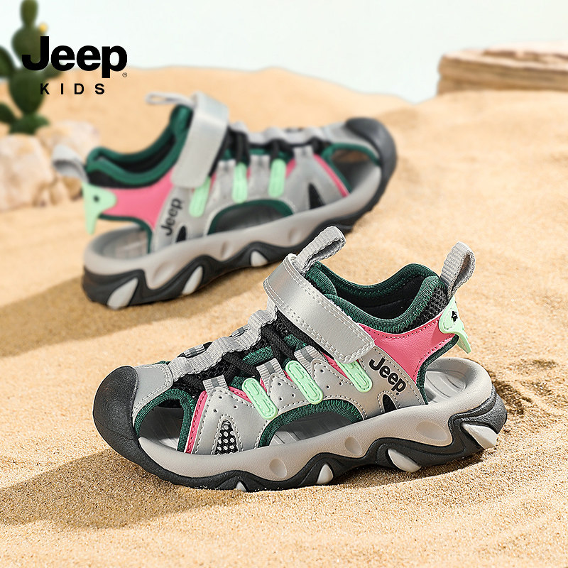 jeep儿童包头凉鞋夏季男童运动童鞋2025新款中大童防滑女童沙滩鞋