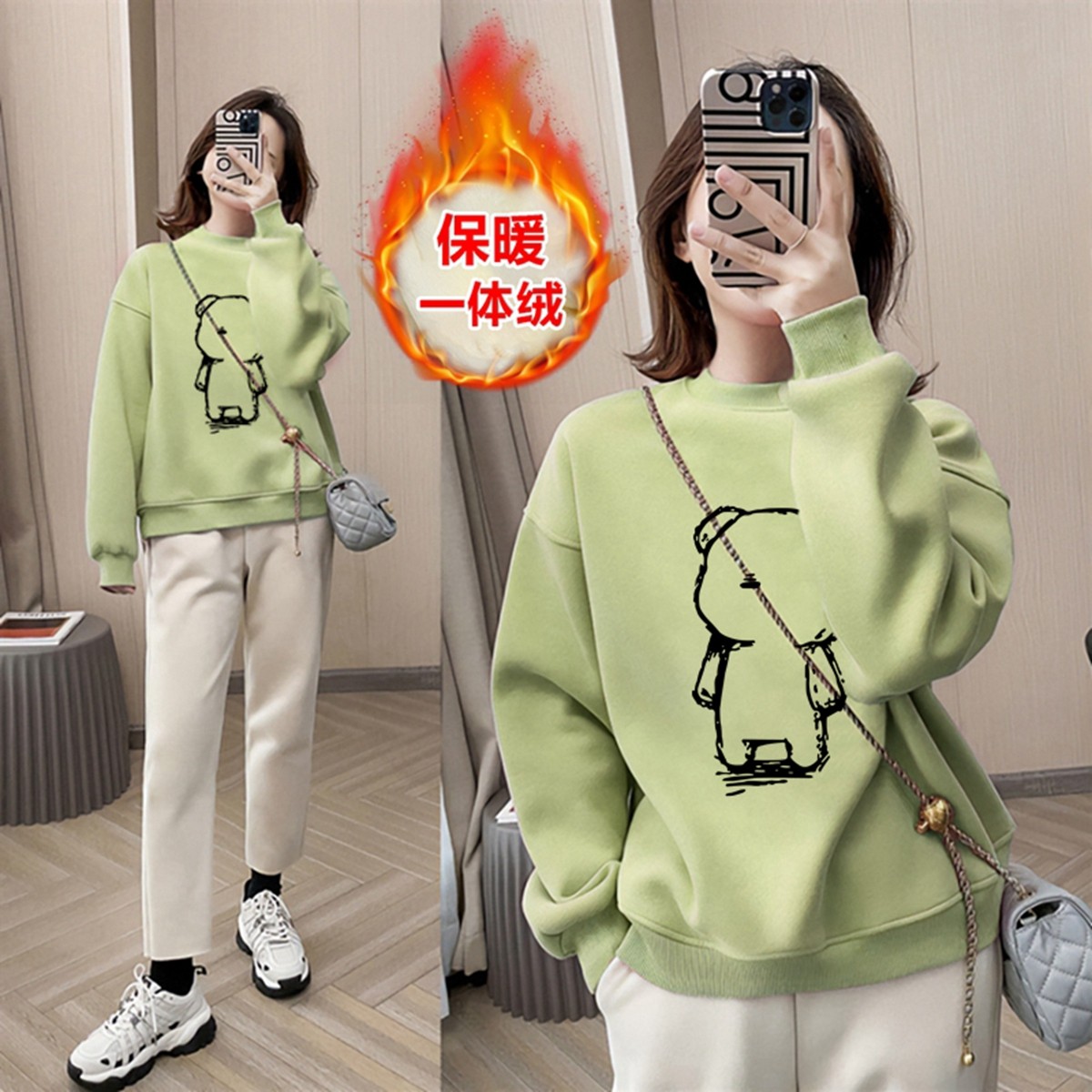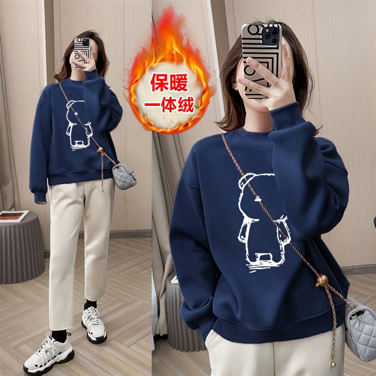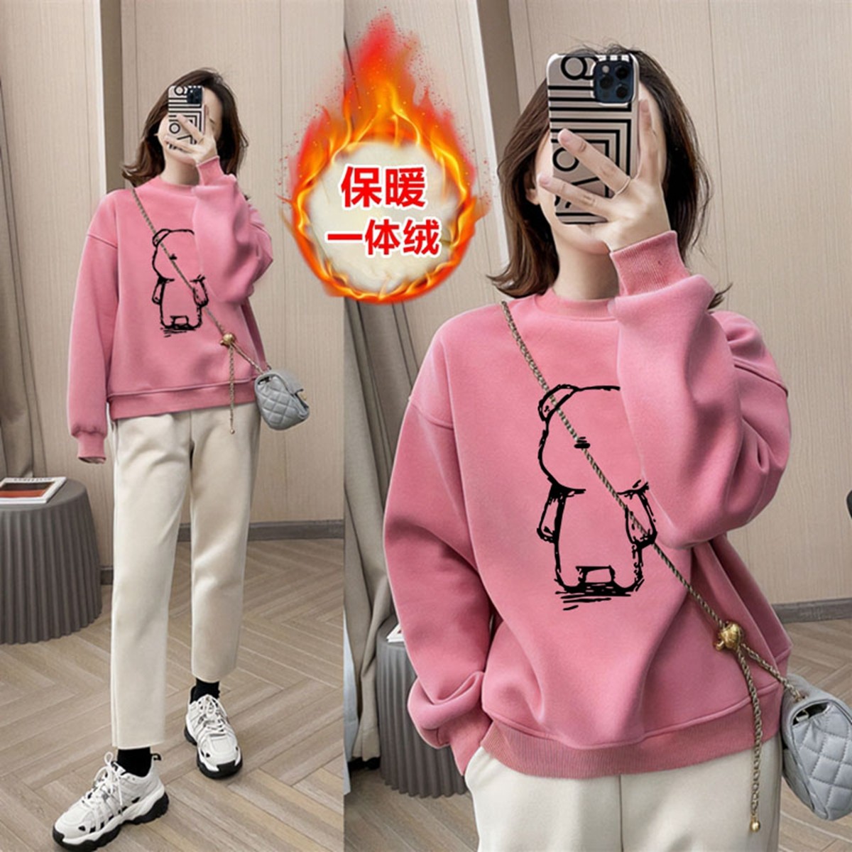 品牌清仓纯棉套头加绒加厚卫衣女秋冬新款宽松韩版长袖保暖打底衫