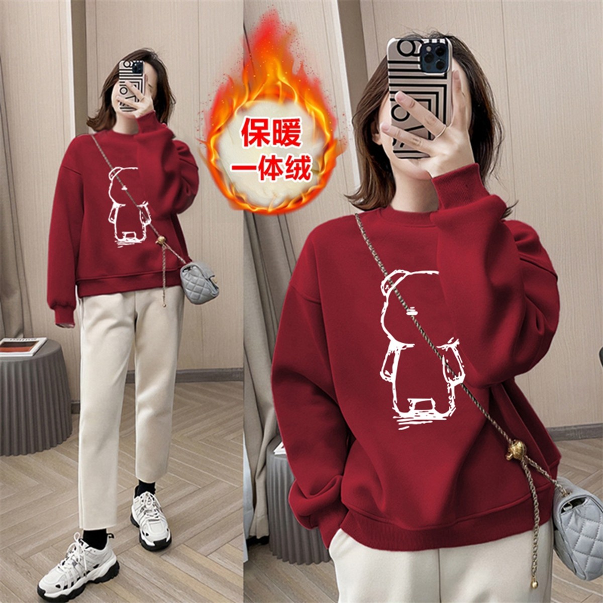 一线品牌加绒加厚纯棉宽松卫衣女