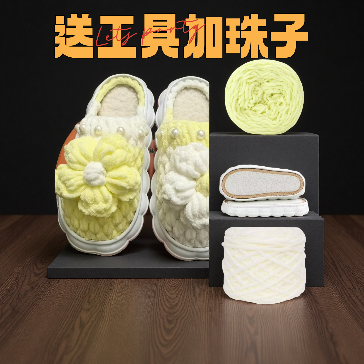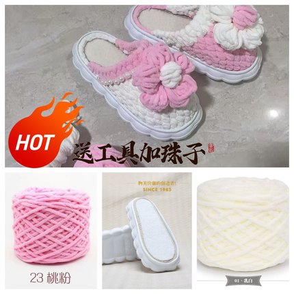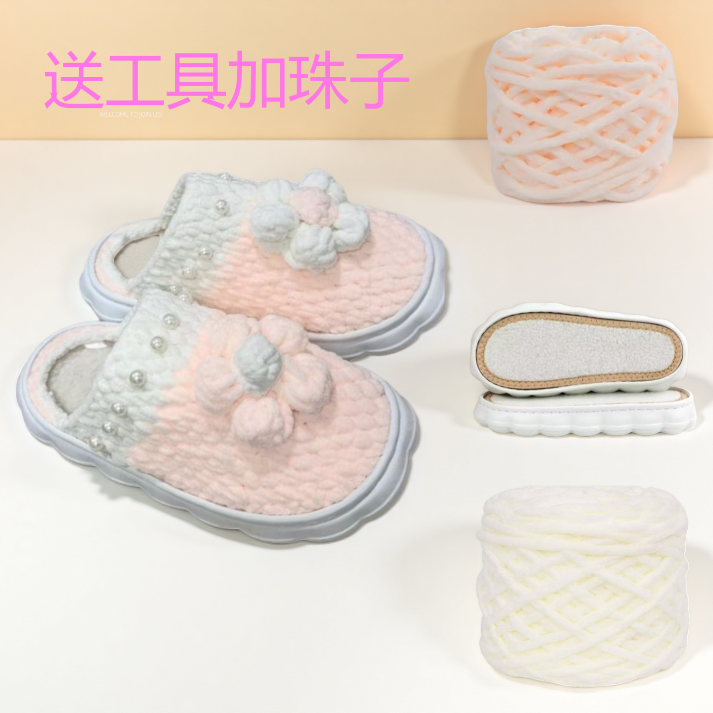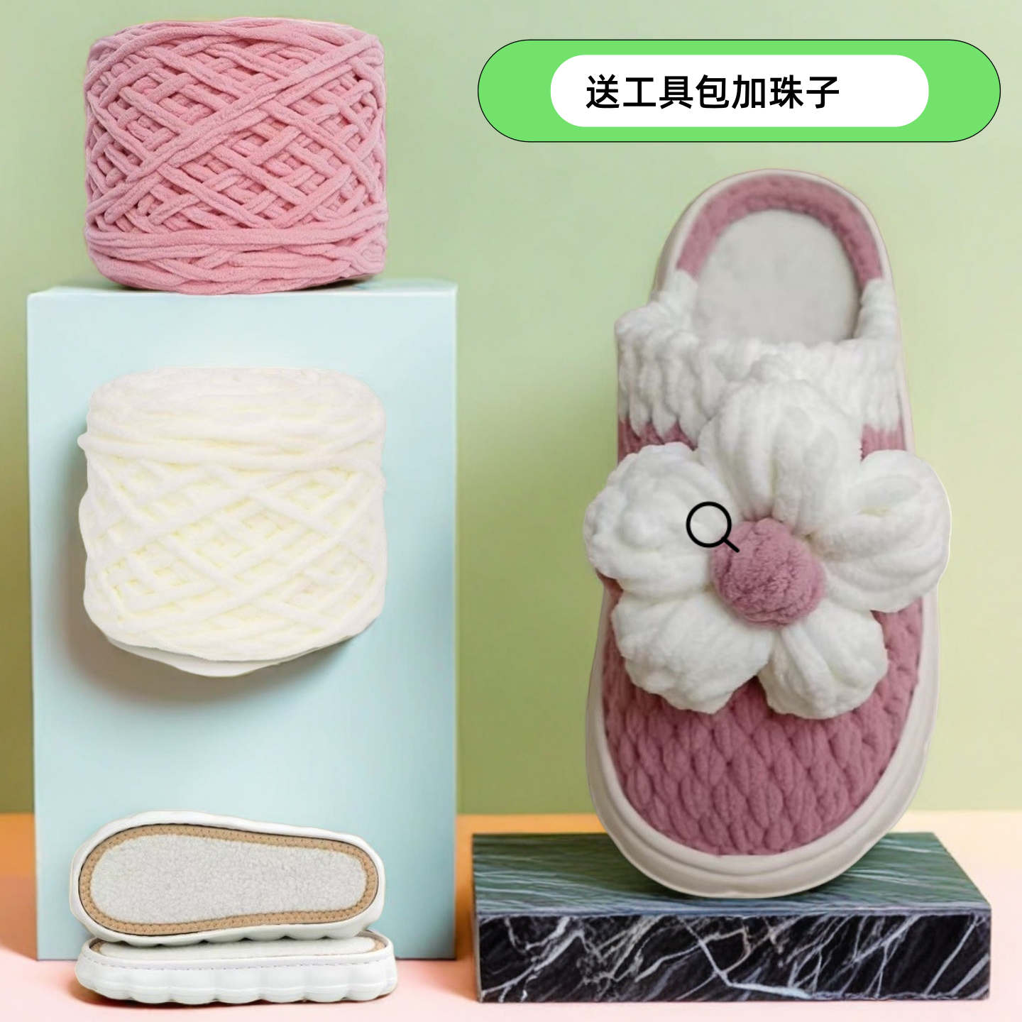 云朵底+冰条线泡芙花鸳鸯手工勾编织家居拖鞋材料包送闺蜜