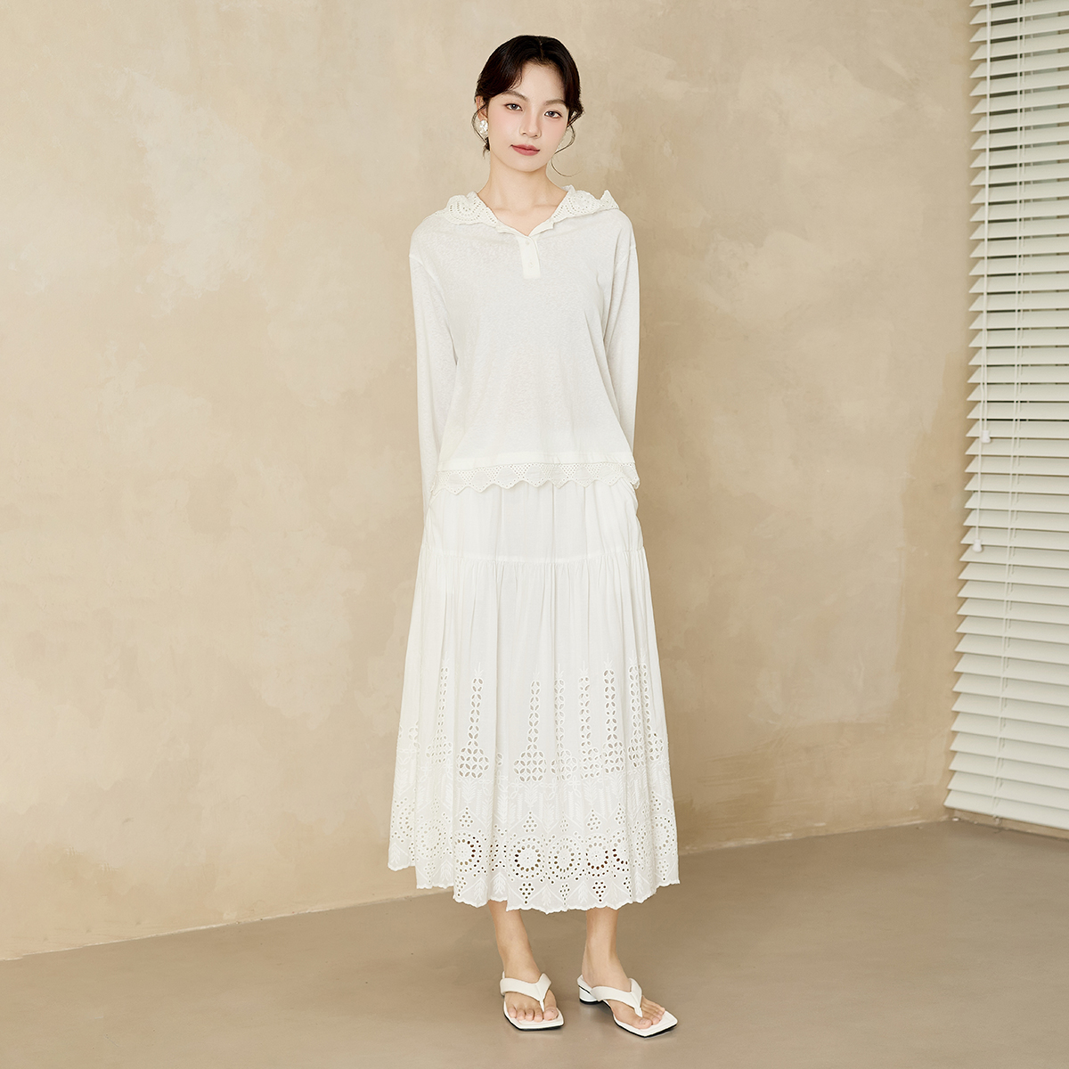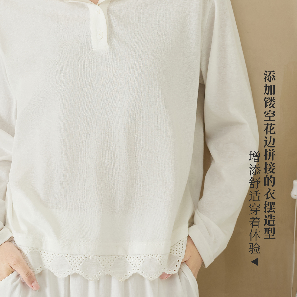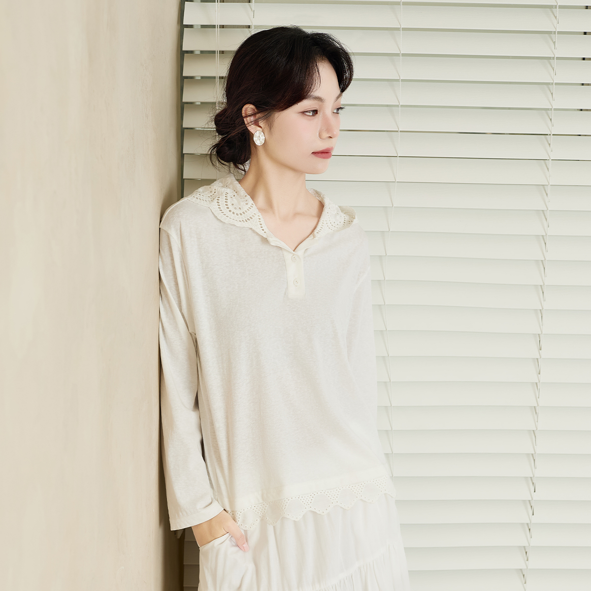 秸熙2025秋季新款百搭纯色宽松连帽T恤镂空花边长袖显瘦时尚上衣