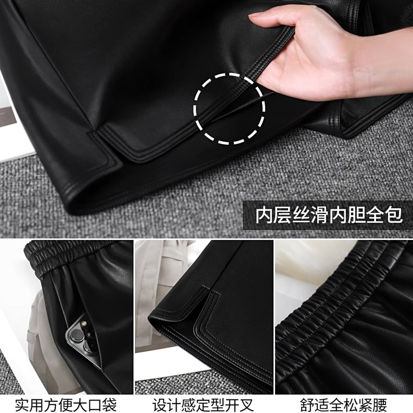 皮短裤女2025新款春秋冬外穿高腰大码靴裤百搭a字阔腿pu皮裤胖mm