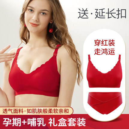孕妇大红色内衣套装本命年结婚怀孕期哺乳文胸聚拢V防下垂新娘内