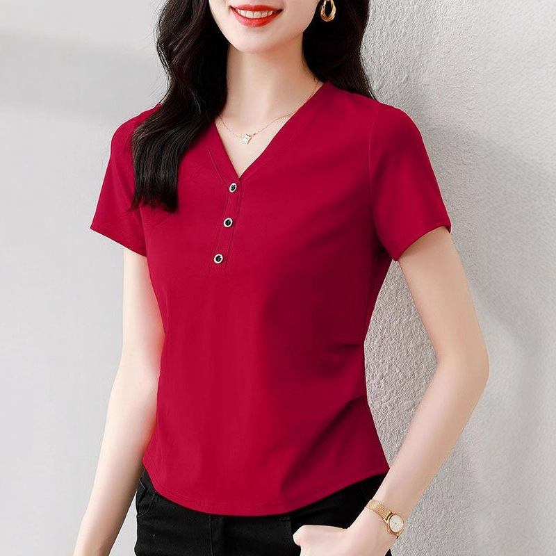 t恤衫v领上衣感短袖中老年妈妈装女装时尚夏季百搭简约白色潮