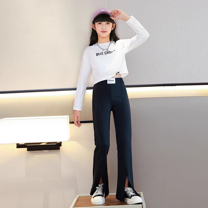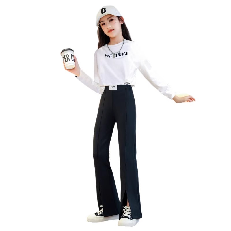 女童喇叭裤2025秋季新款儿童裤子春秋款微喇女孩秋装长裤黑色薄款