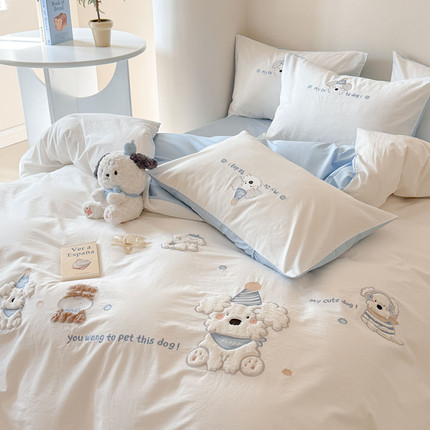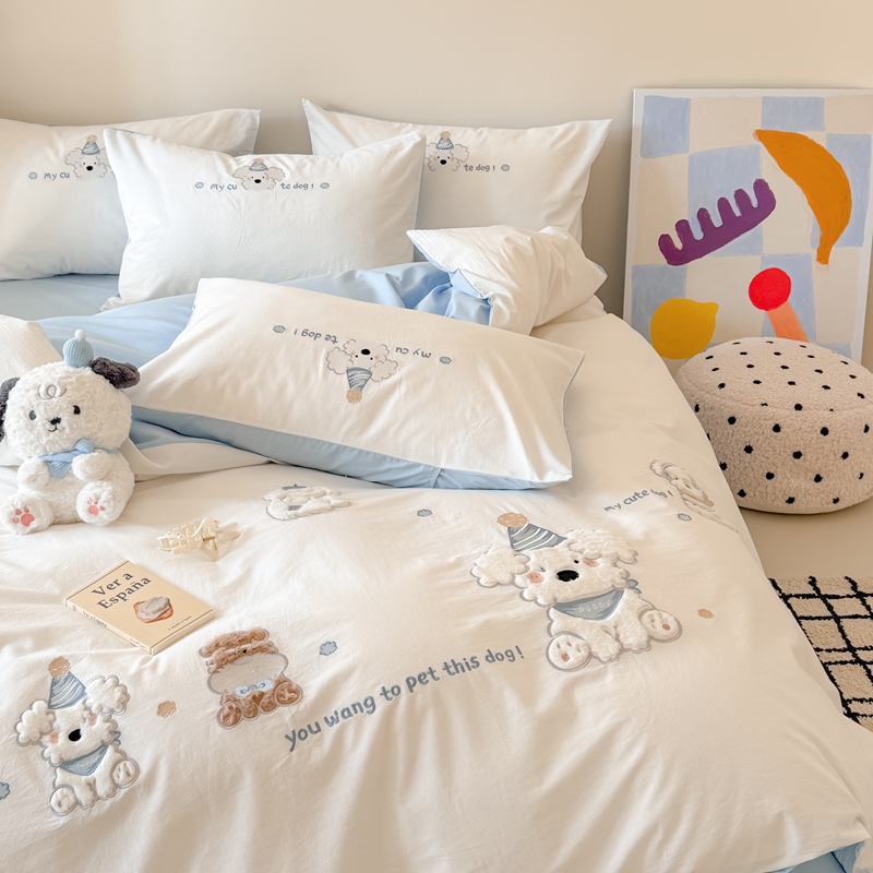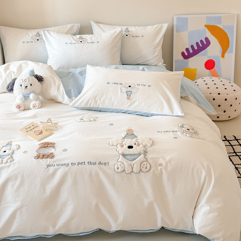 A类可爱卡通100纯棉四件套全棉水洗棉床品床单被套儿童三件套床笠