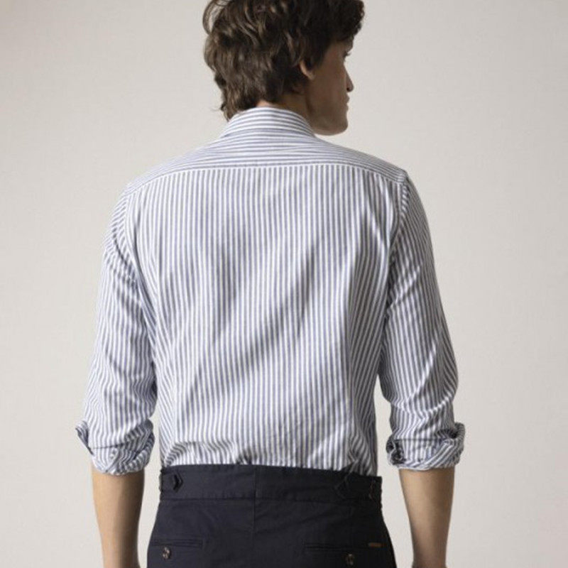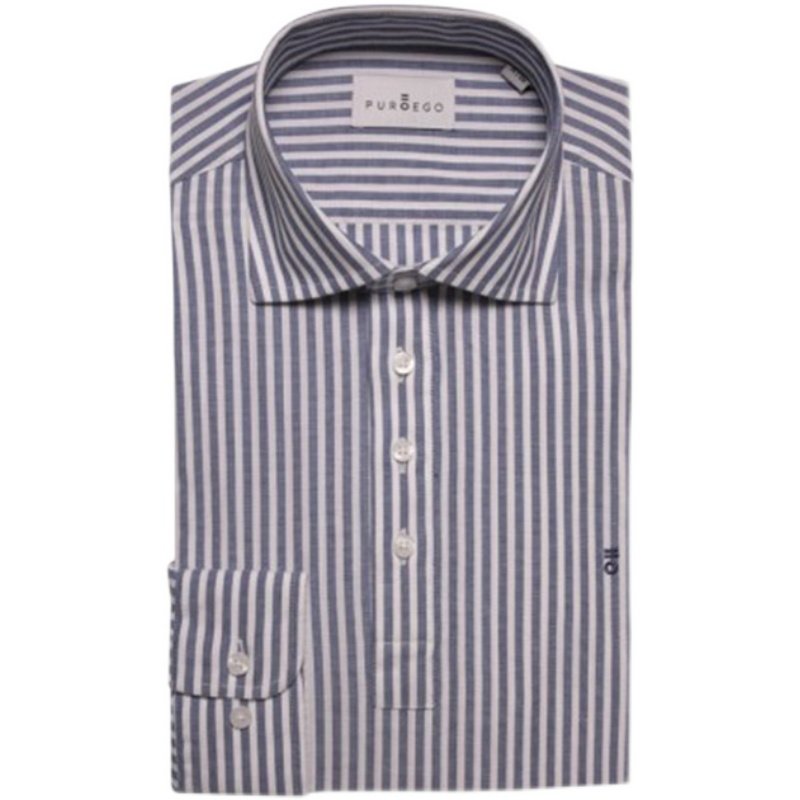 普罗艾购穿搭品质男装商务休闲条纹半开襟纽扣长袖男士套头衬衫