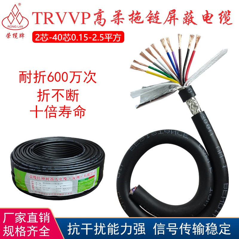 高柔性拖链屏蔽线TRVVP2 3 5 20芯0.2 0.5平方机器人信号控制电缆