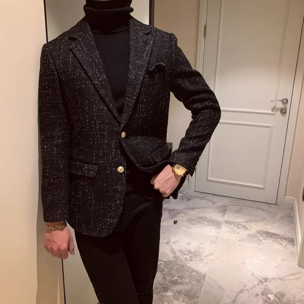 英伦轻熟风修身小西装外套男士韩版潮流痞帅休闲单西服高级感上衣