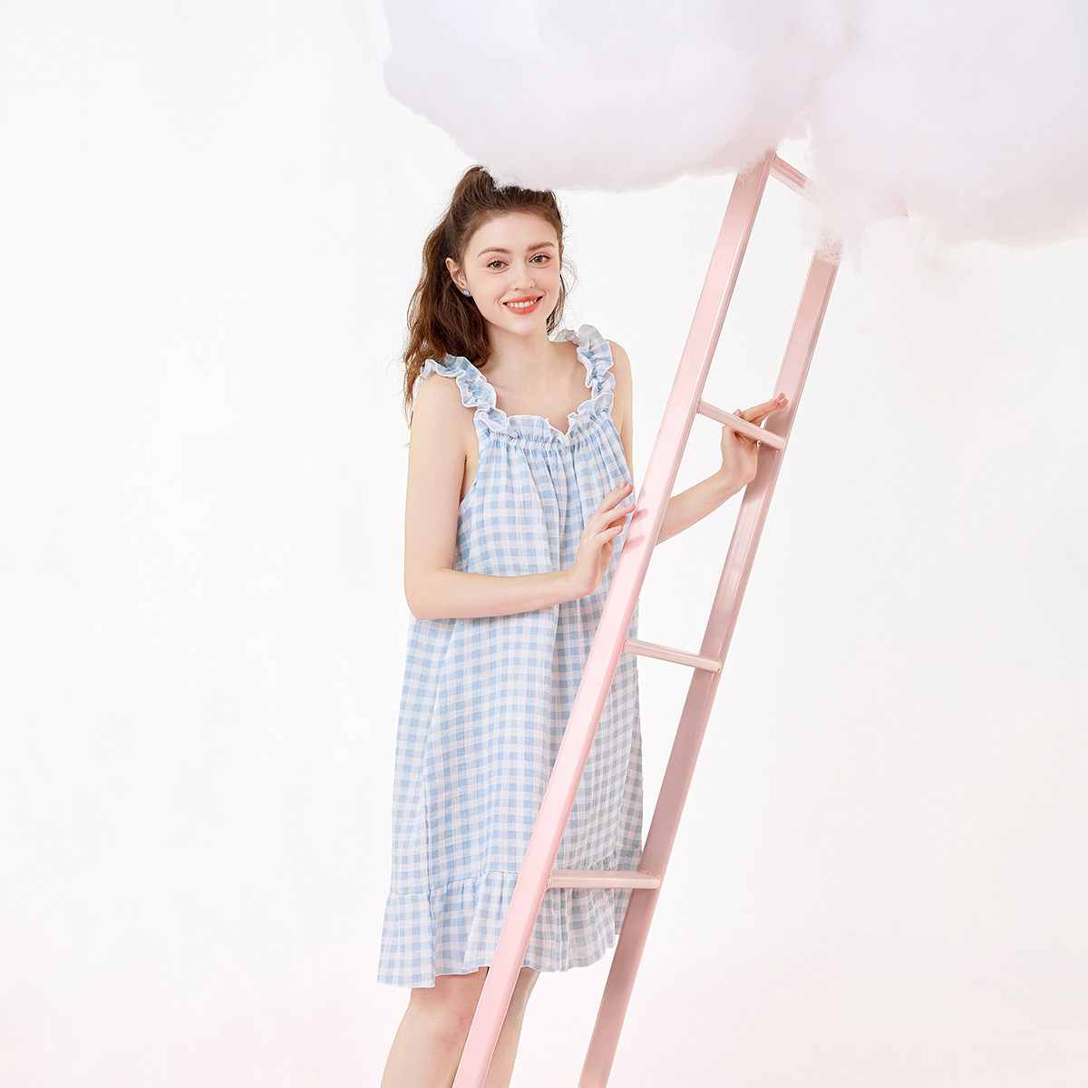 BE纯棉夏季新品清甜格子睡裙