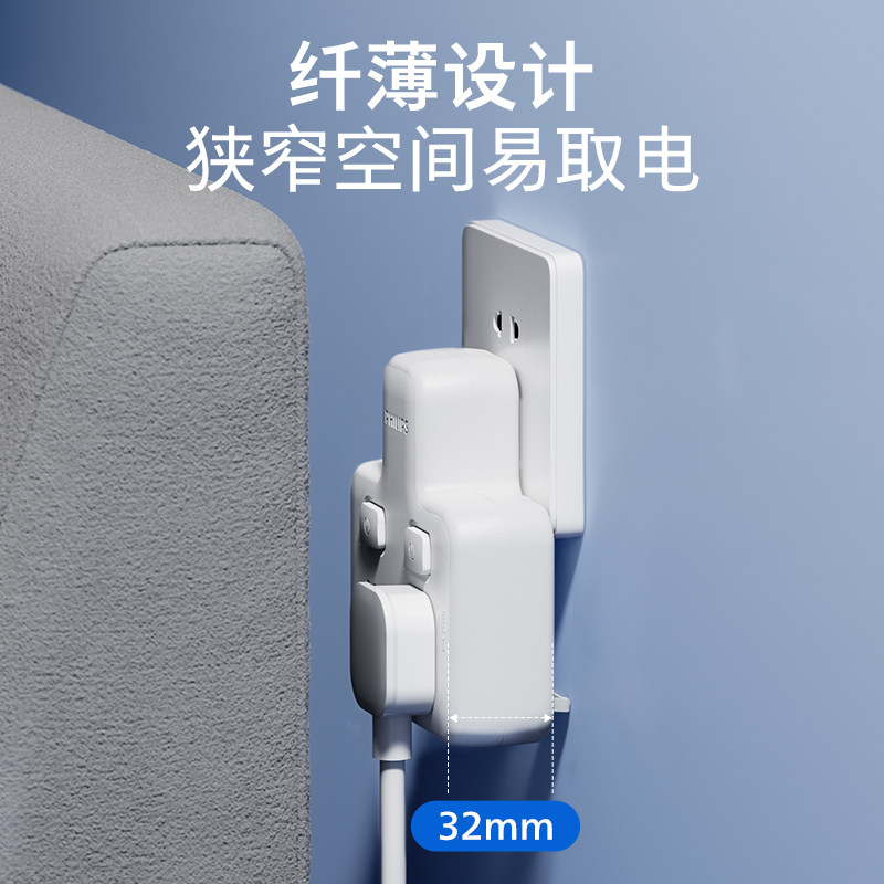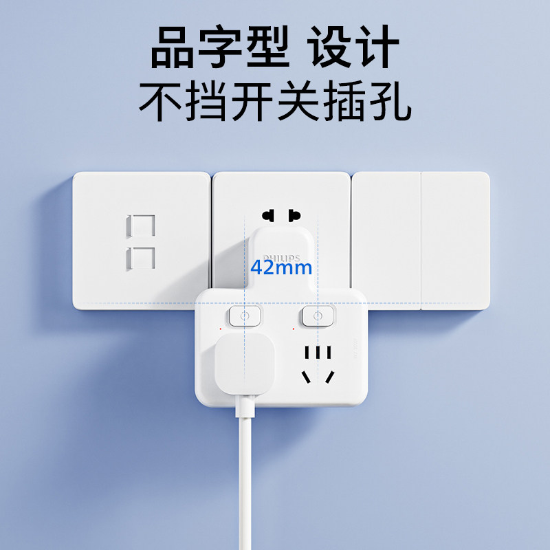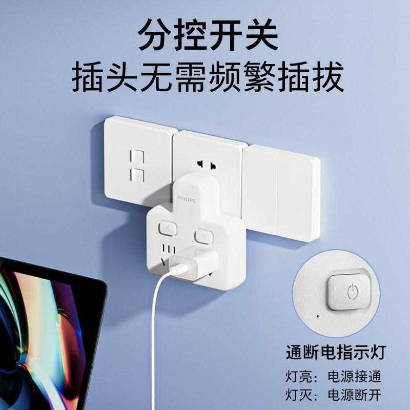 PHILIPS飞利浦转换器插座一转二分控【荷兰品牌】