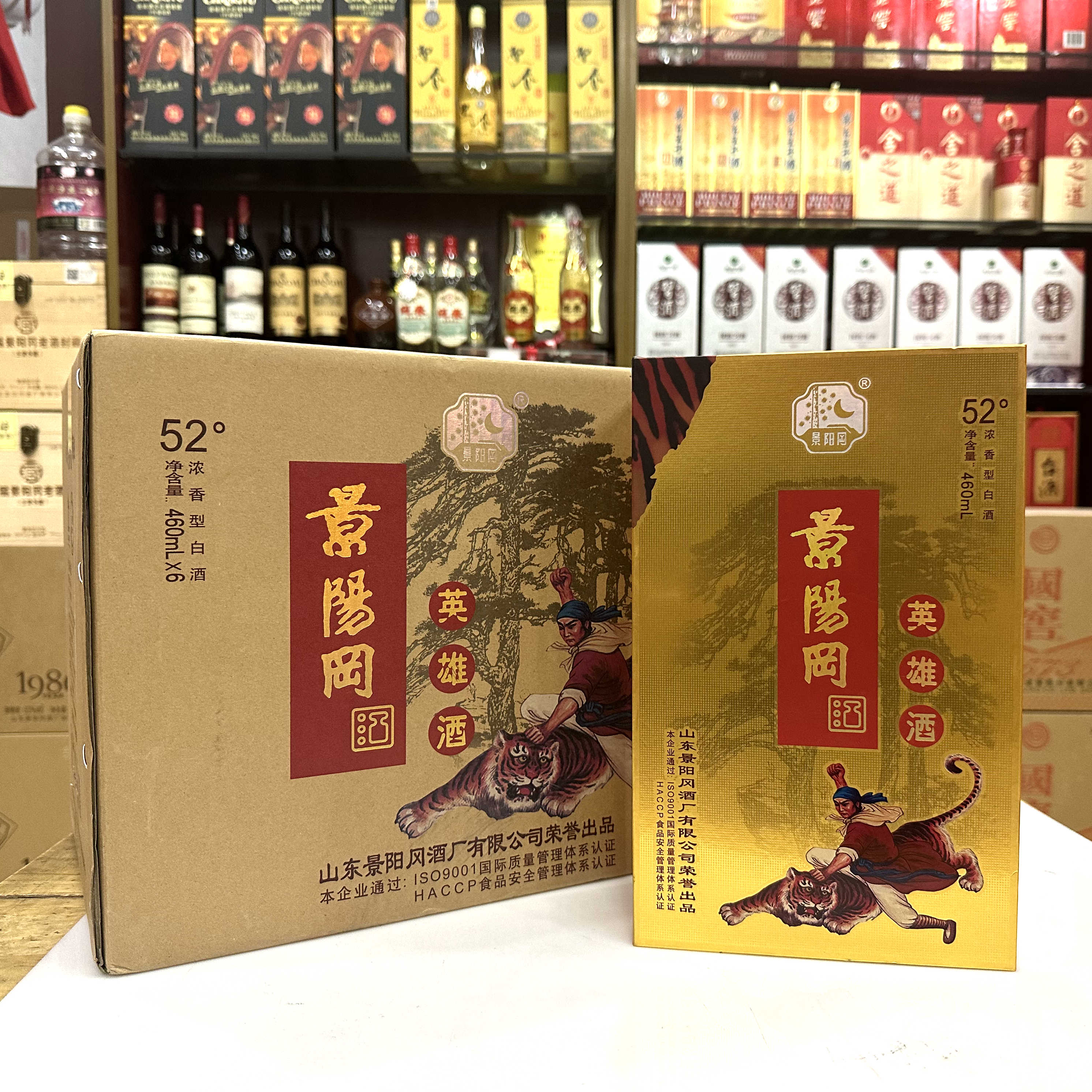 景阳冈52度英雄酒460ml整箱6瓶纯粮酒硬盒装带手提袋聊城特产