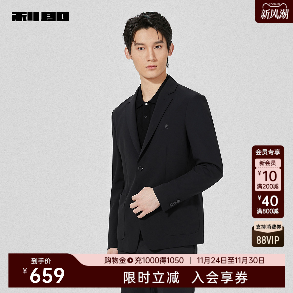 利郎含铜氨纤维秋季薄款西服外套