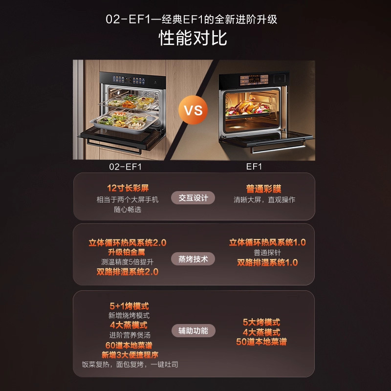 方太蒸烤烘炸炖一体机02-EF1智能彩膜嵌入式蒸烤箱家用官方旗舰店