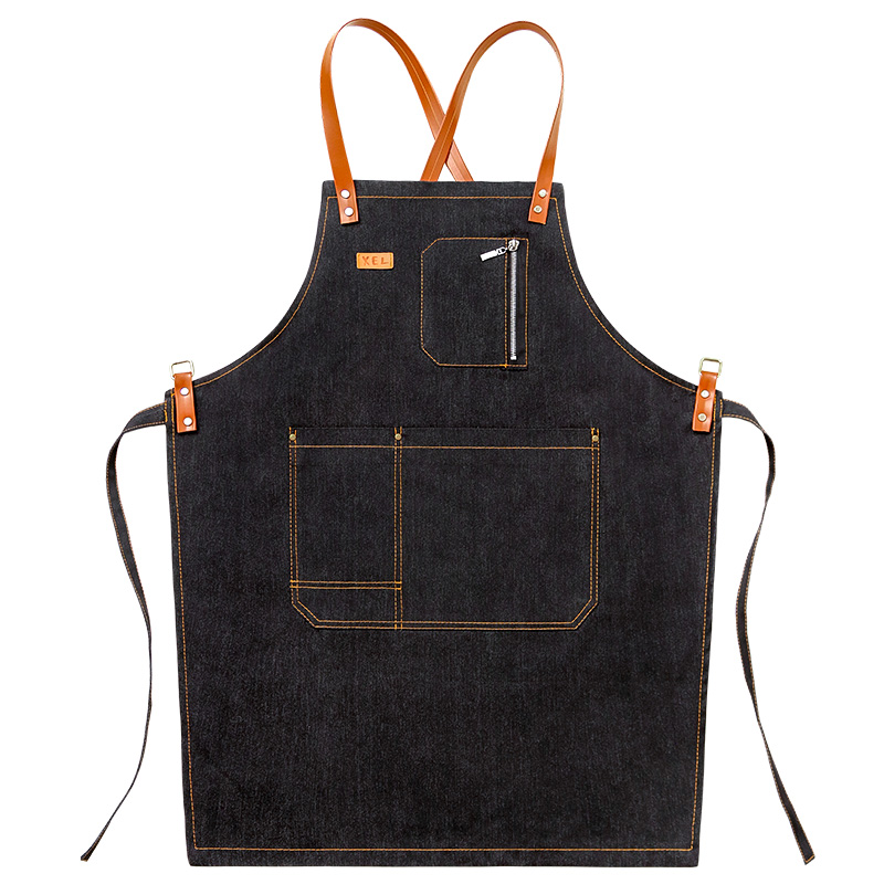 牛仔围裙韩版美发咖啡奶茶店服务员画画工作服男女士定制logo刺绣