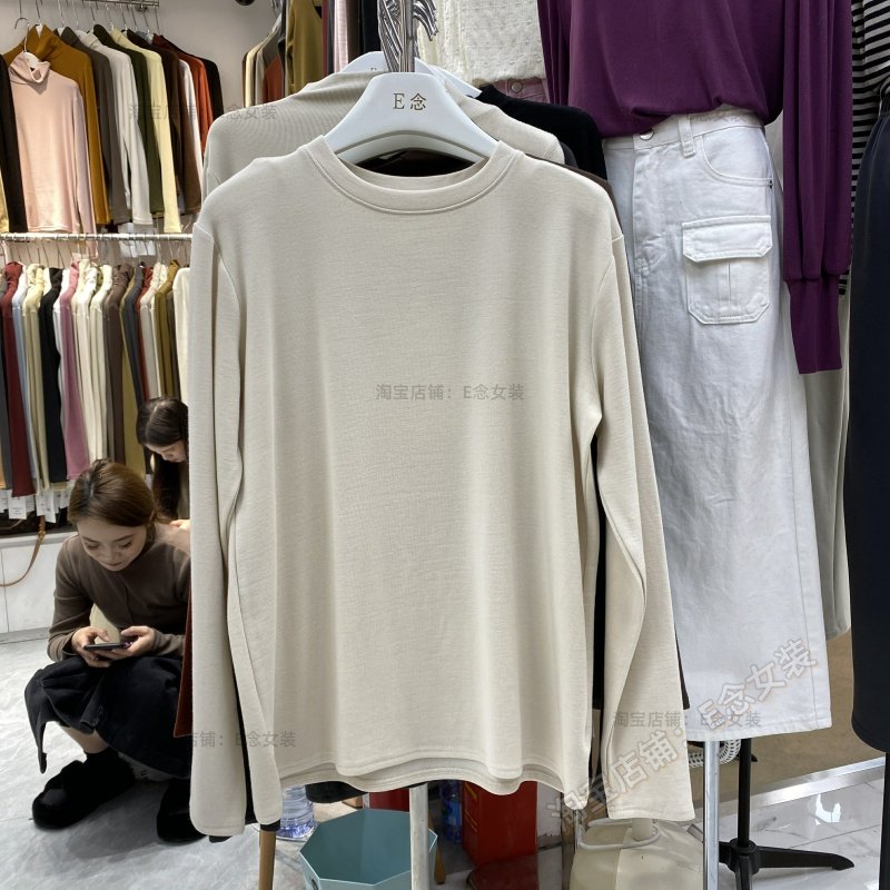 E念8003韩版加绒柔软亲肤圆领长袖T恤气质百搭高弹力打底衫女