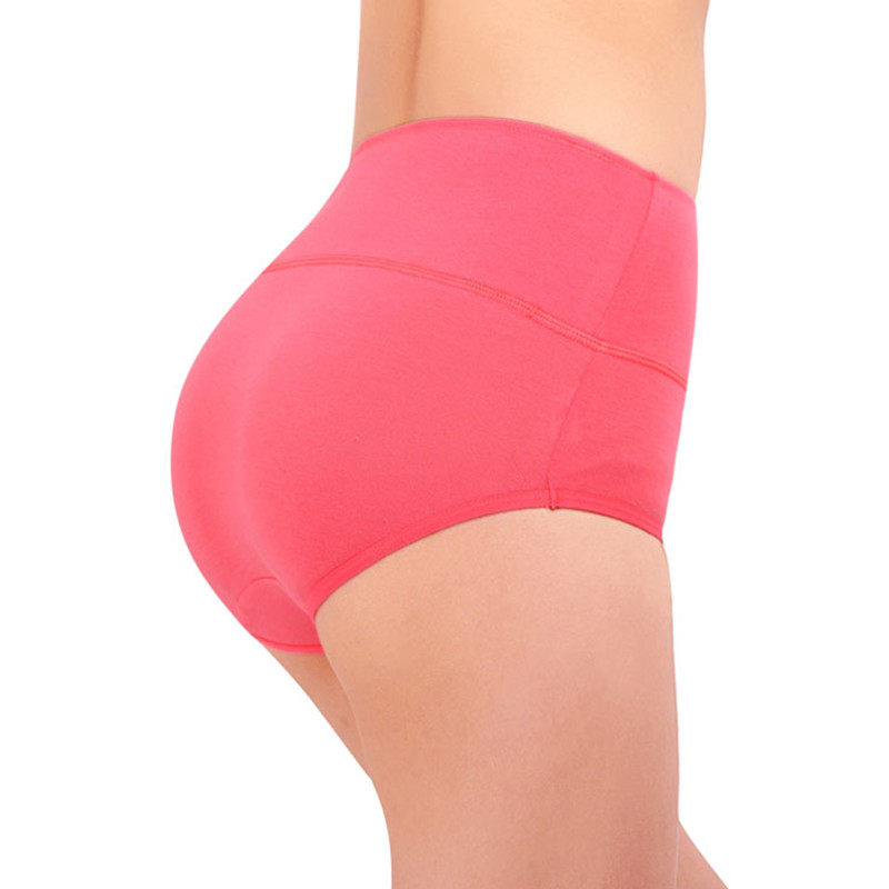女士莱卡棉高腰收腹青年纯色内裤