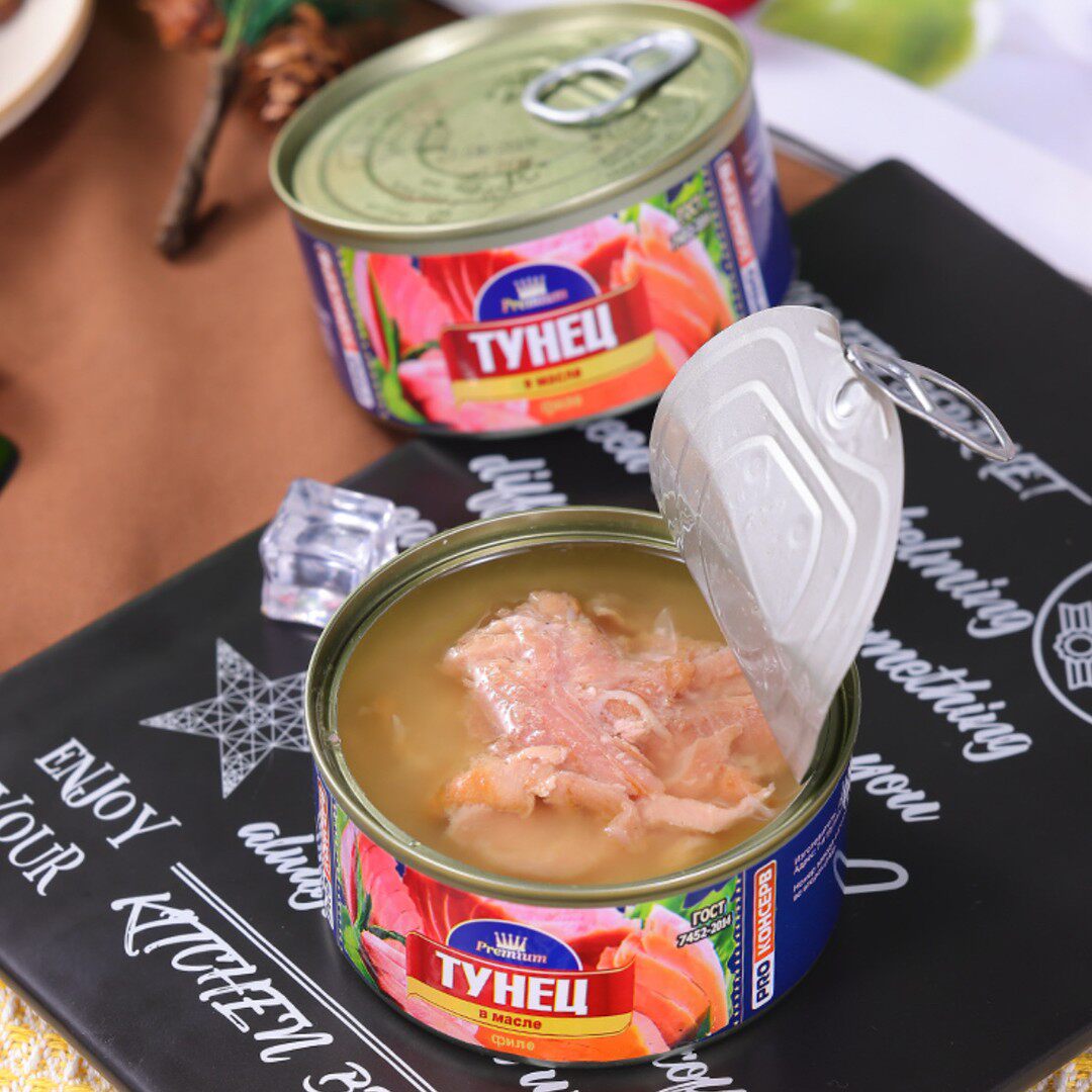 俄罗斯原装进口金枪鱼罐头开封即食方便食品185克/盒下酒菜