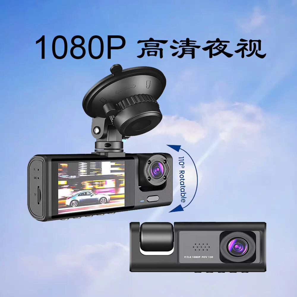 2025新款3镜头录像行车记录仪高清1080P车前录车内车后三镜头夜视