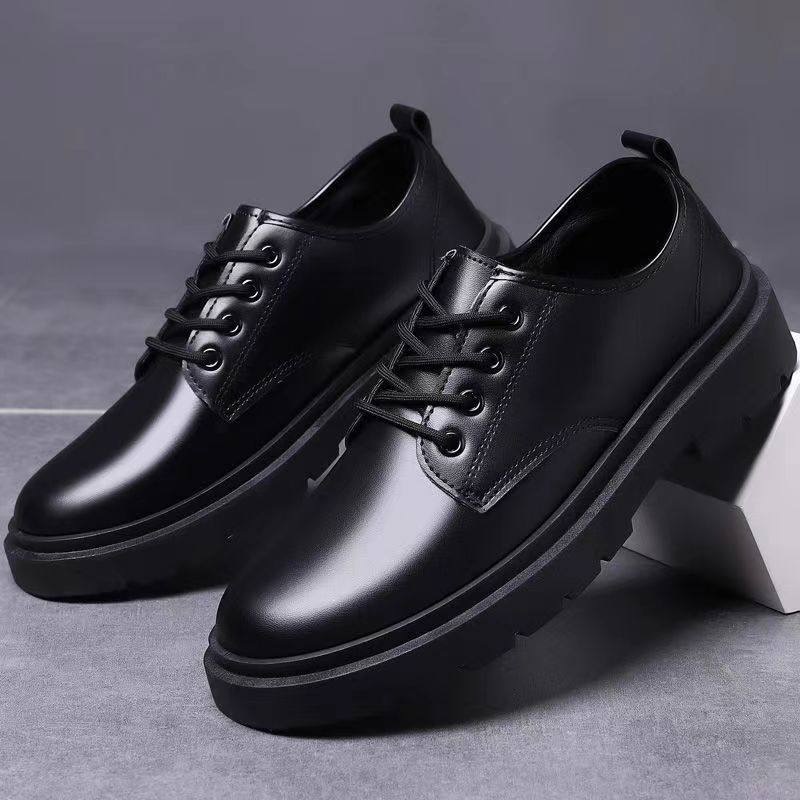 男鞋冬季英伦风商务正装男士休闲皮鞋新郎结婚黑色厚底增高德比鞋