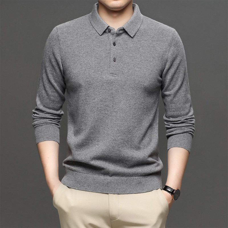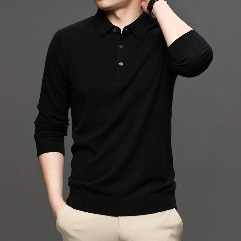 翻领商务长袖t恤爸爸装纯羊毛衫