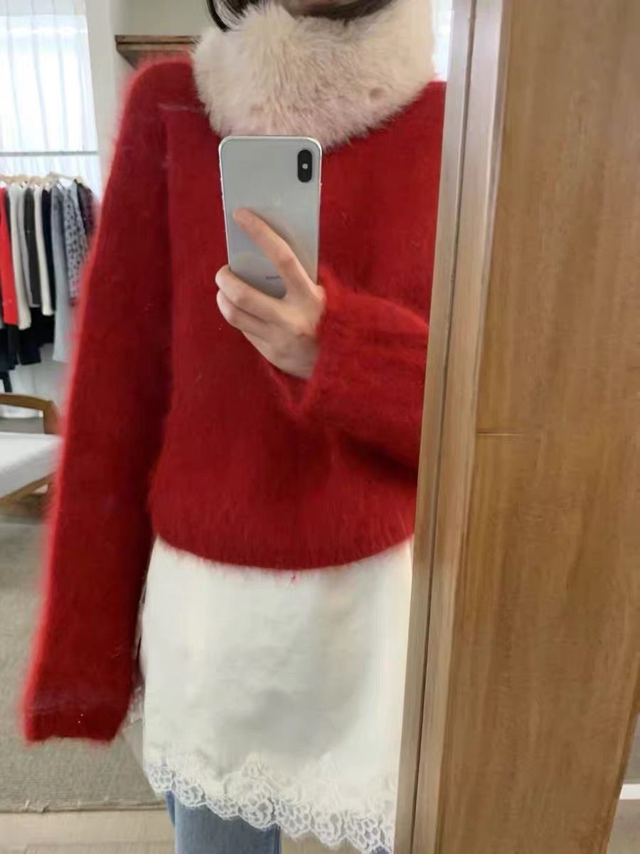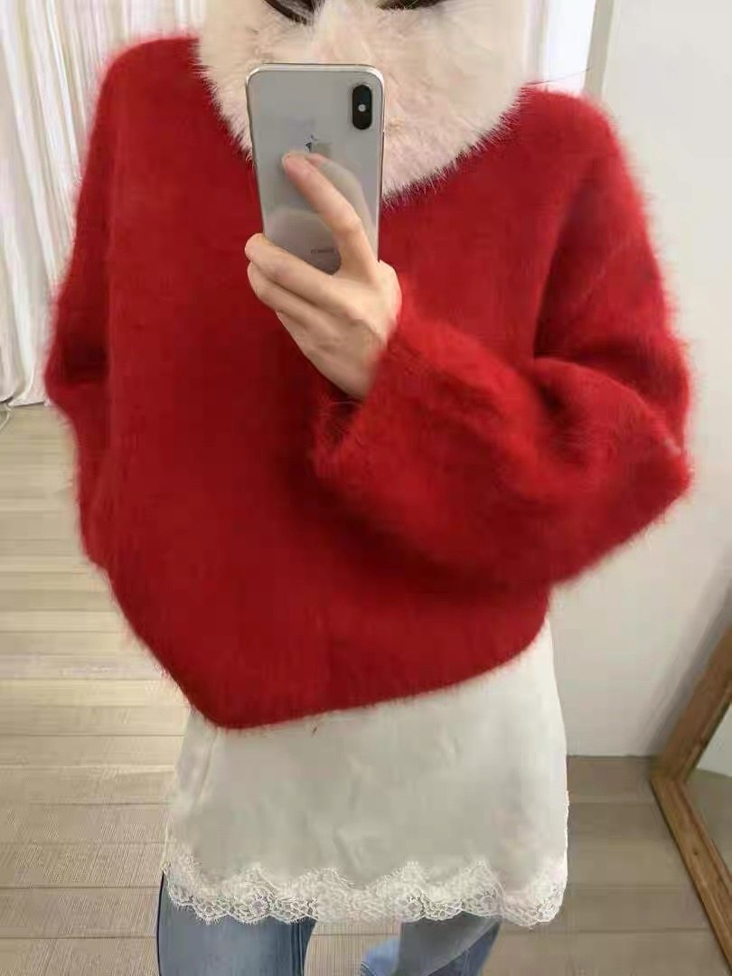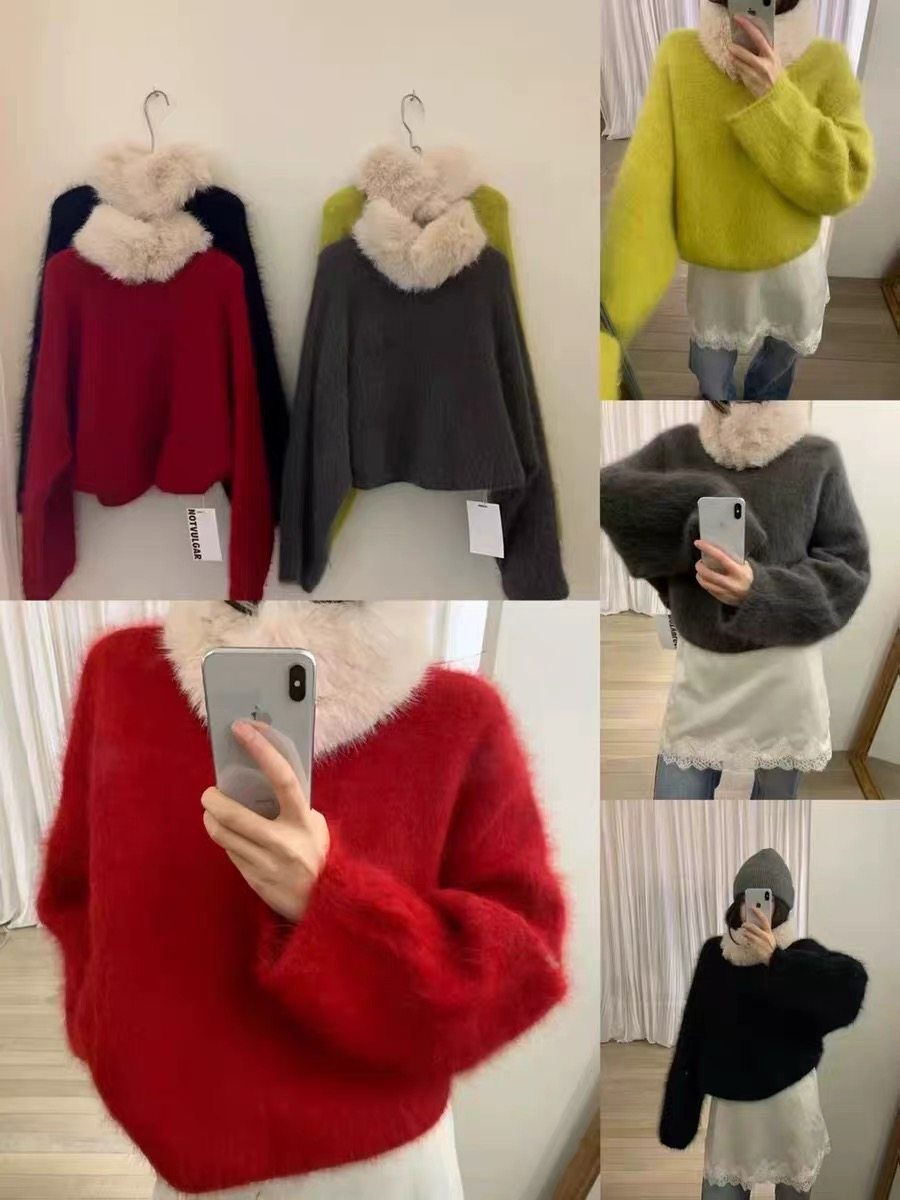 Ulour韩系25新款圆领套头毛衣女宽松慵懒风蝙蝠袖针织衫上衣