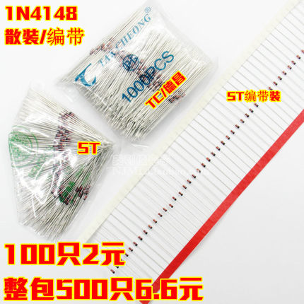直插开关二极管 1N4148 IN4148 ST TC德昌 编带/散装/ DO-35
