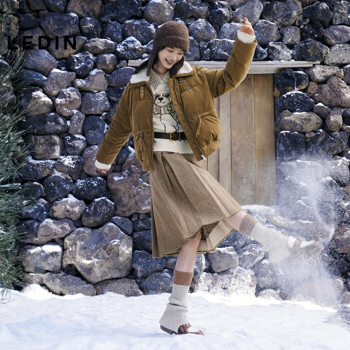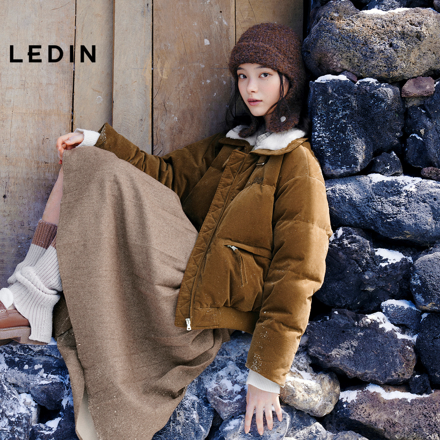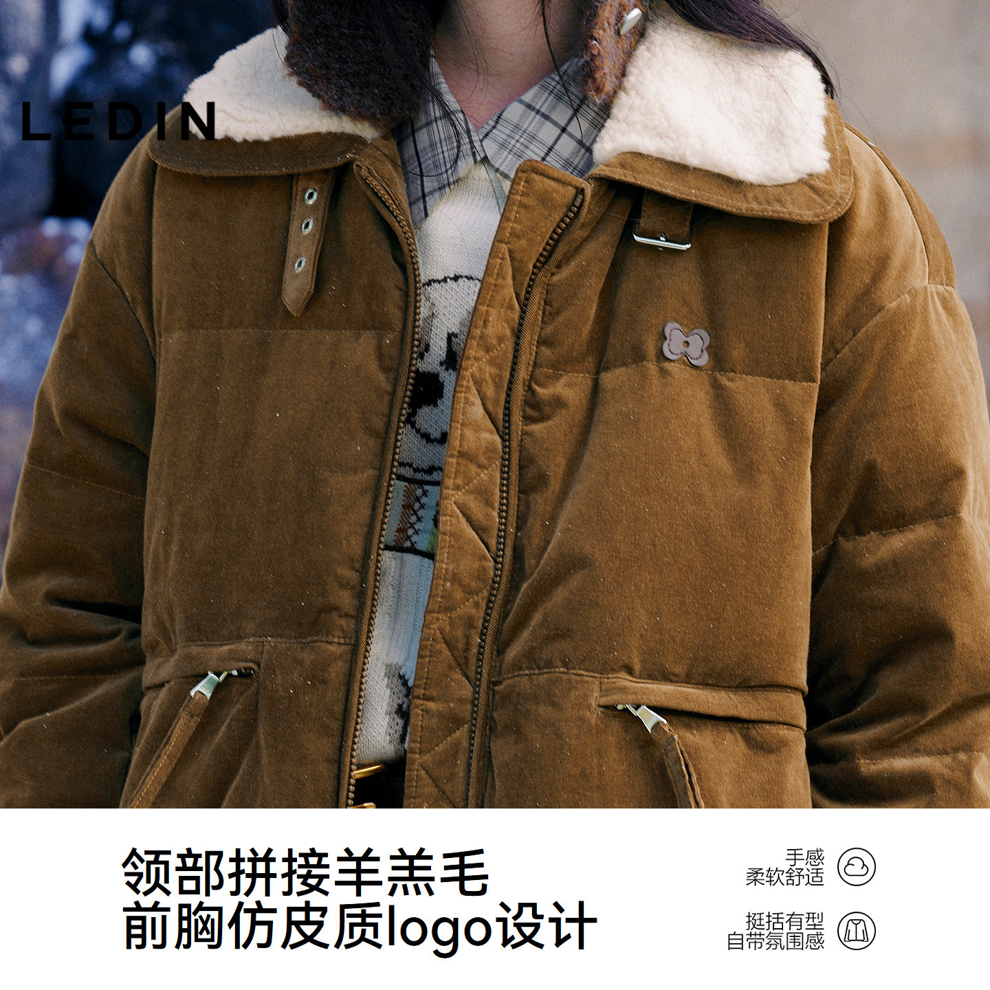 乐町美拉德灯芯绒仿羊羔毛短款羽绒服女装25冬季新款短款保暖外套