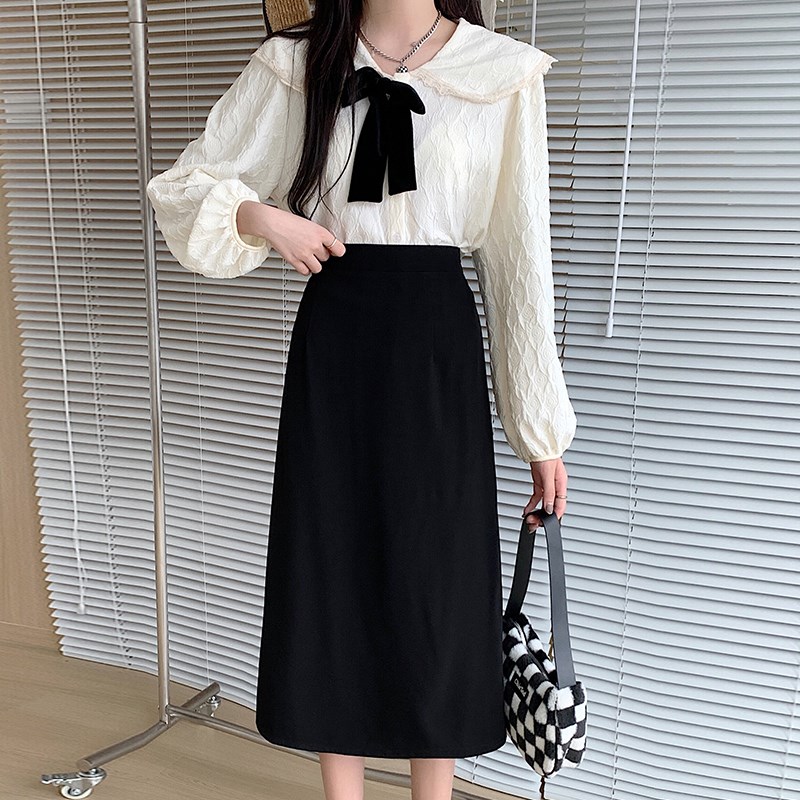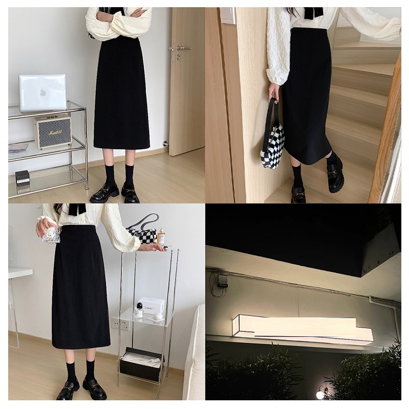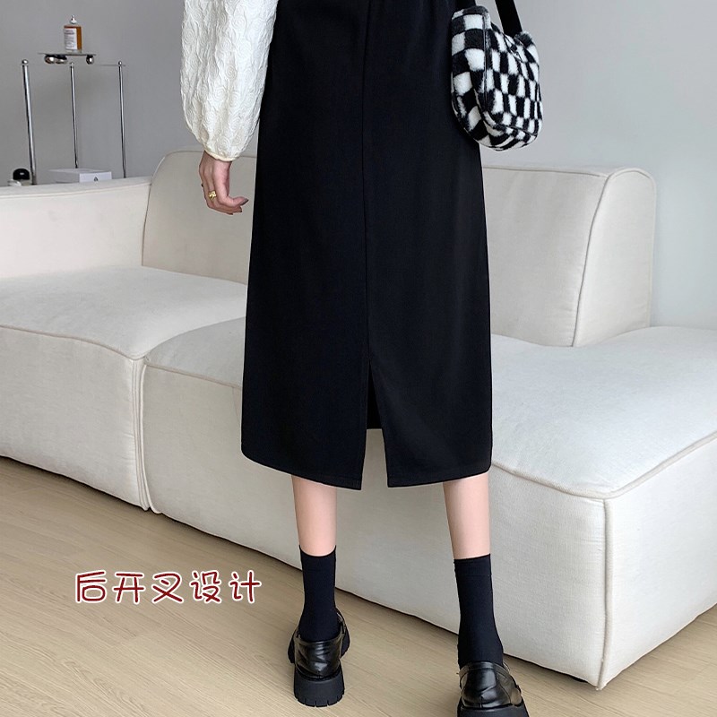 西装半身裙女春夏大码胖m黑色高腰a字裙中长款直筒遮跨显瘦开叉裙